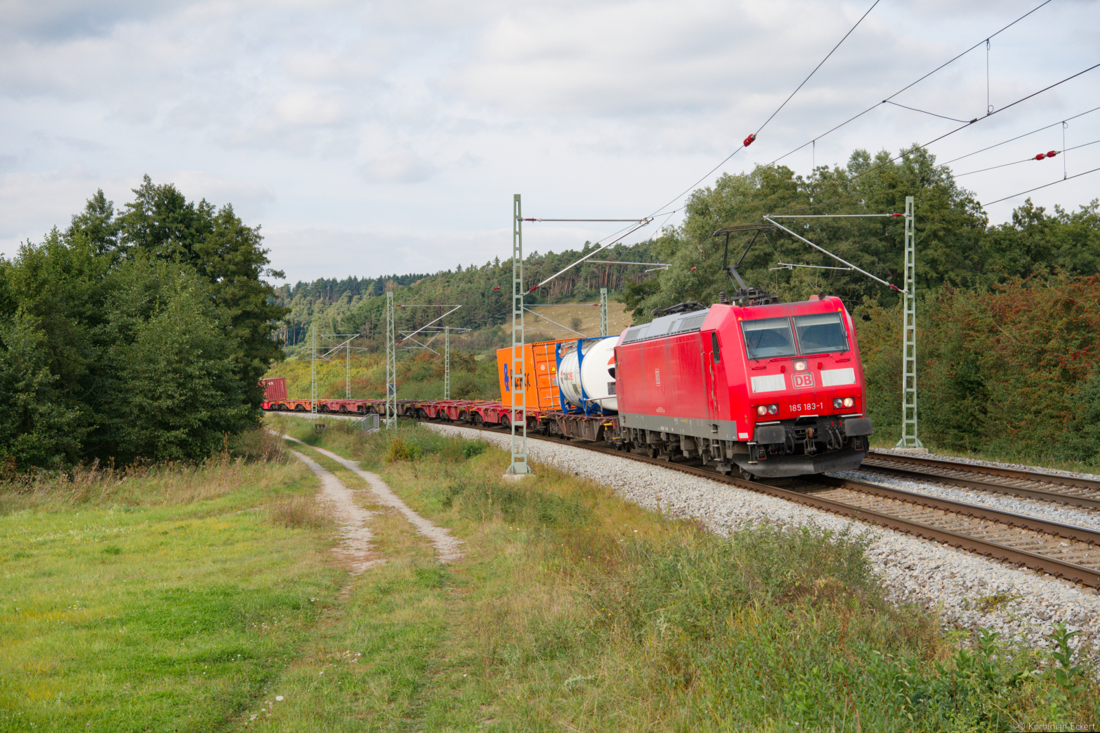 185 175 DB Cargo mit einem Betonteilezug bei Oberdachstetten Richtung Würzburg, 21.09.2021