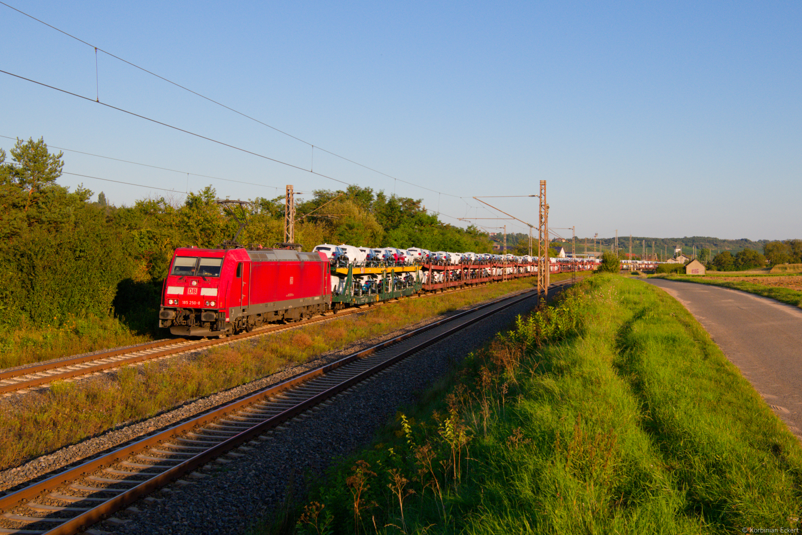 Ein schwerer Kohlezug, bespannt mit zwei DN 185zigern, kam am 14.9.2025 um 14.27 Uhr durch den Bahnhof Gädheim in Richtung Bamberg. Vorn führte die 185304-3. Gerd Hahn