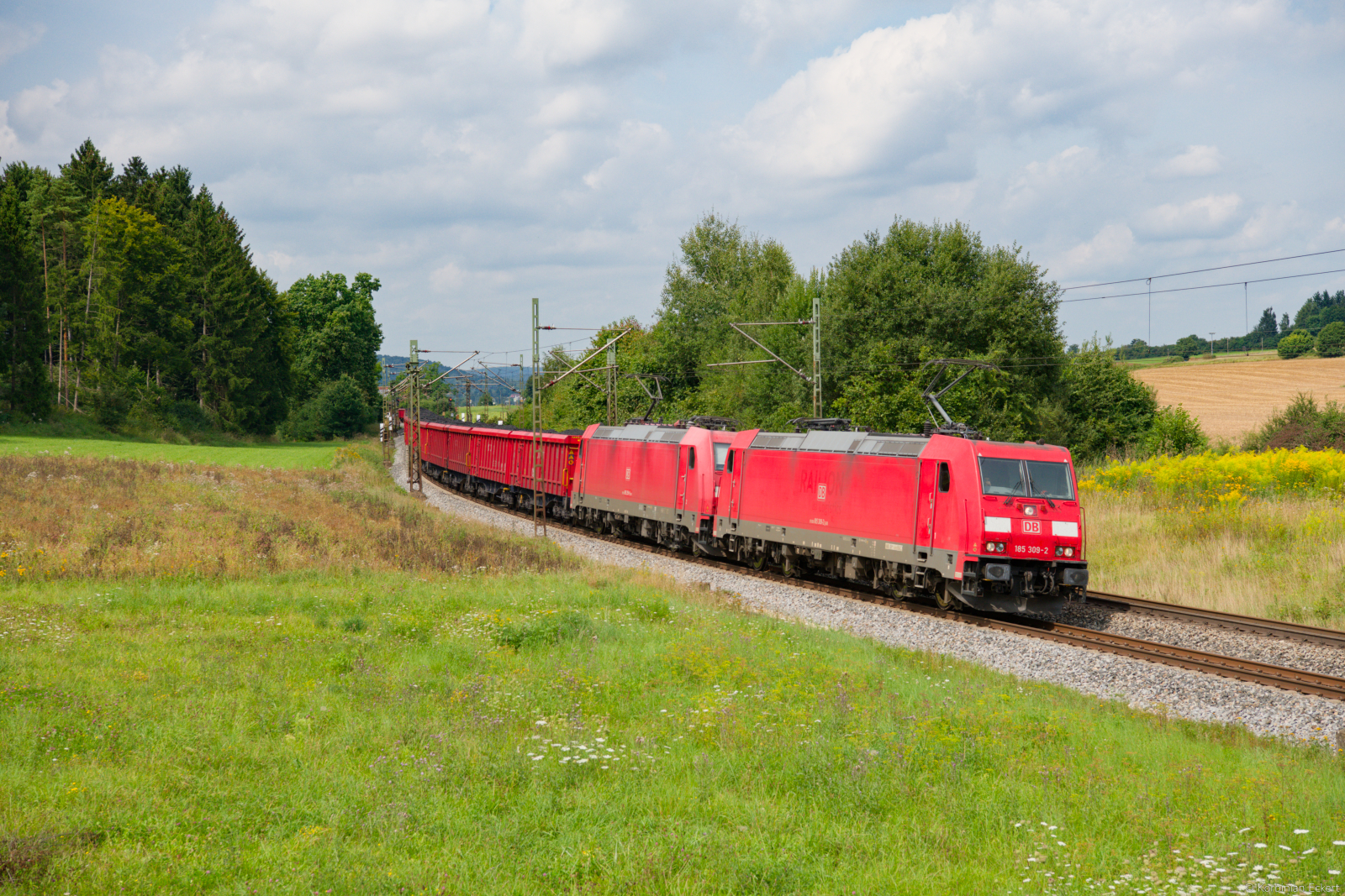 185 309 DB Cargo und 185 259 DB Cargo mit einem Innofreight Kohlezug bei Beratzhausen Richtung Regensburg, 21.08.2021