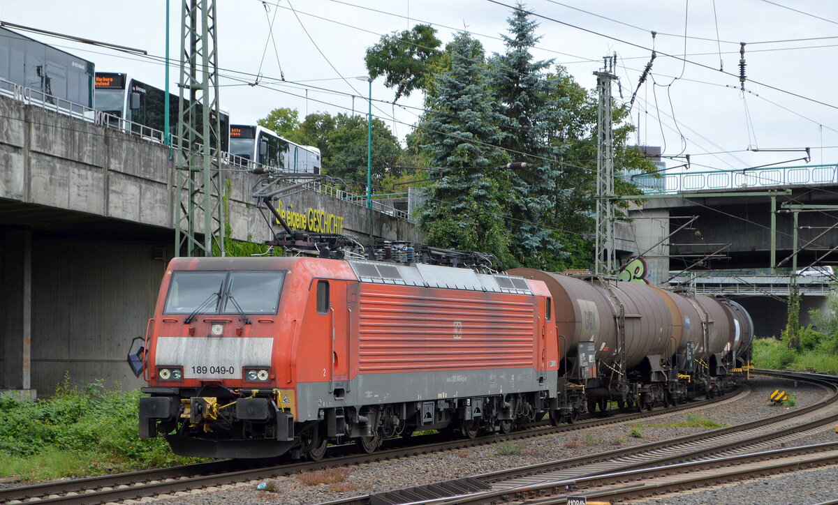 DB Cargo AG [D] mit "189 049-0" [NVR-Nummer: 91 80 6189 049-0 D-DB] und gemischtem Kesselwagenzug am 22.07.22 Durchfahrt Bhf. Hamburg-Harburg. Lothar Stöckmann