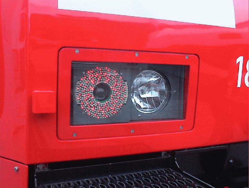 Weiße LEDs, in Taschenlampen, Fahrradlampen und nun auch in Lokomotiven. Sie zeichnen sich durch Erschütterungsunempfindlichkeit, hohen Wirkungsgrad und extrem lange Lebensdauer aus. Eigentlich können LEDs ja nur Licht einer Wellenlänge emittieren, weiße LEDs leuchten im Grunde genommen blau, und eine Schicht (ähnlich der von Leuchtstofflampen, die ja UV-Licht in sichtbares umwandeln) wandelt dieses Licht in weißes um. 29.9.02, InnoTrans Berlin Thomas Wendt