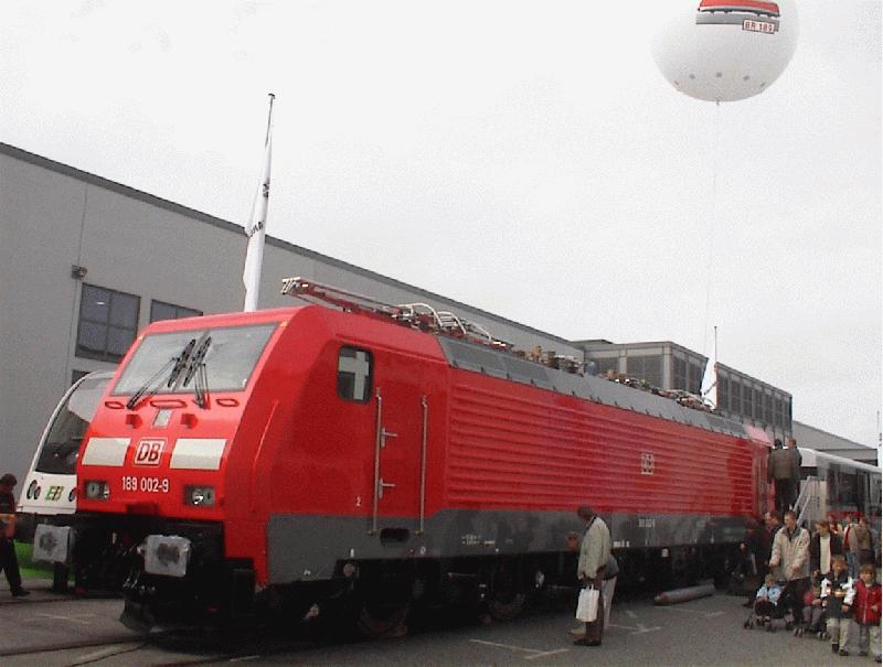 Ganze Reihen von Hobby-Fotografen standen an der Ecke, wo auch ich dieses Foto nahm. Völlig menschenfrei war die Europalok 189 002-9 nicht zu kriegen, aber besser als gar nichts. 29.9.02, InnoTrans Berlin Thomas Wendt