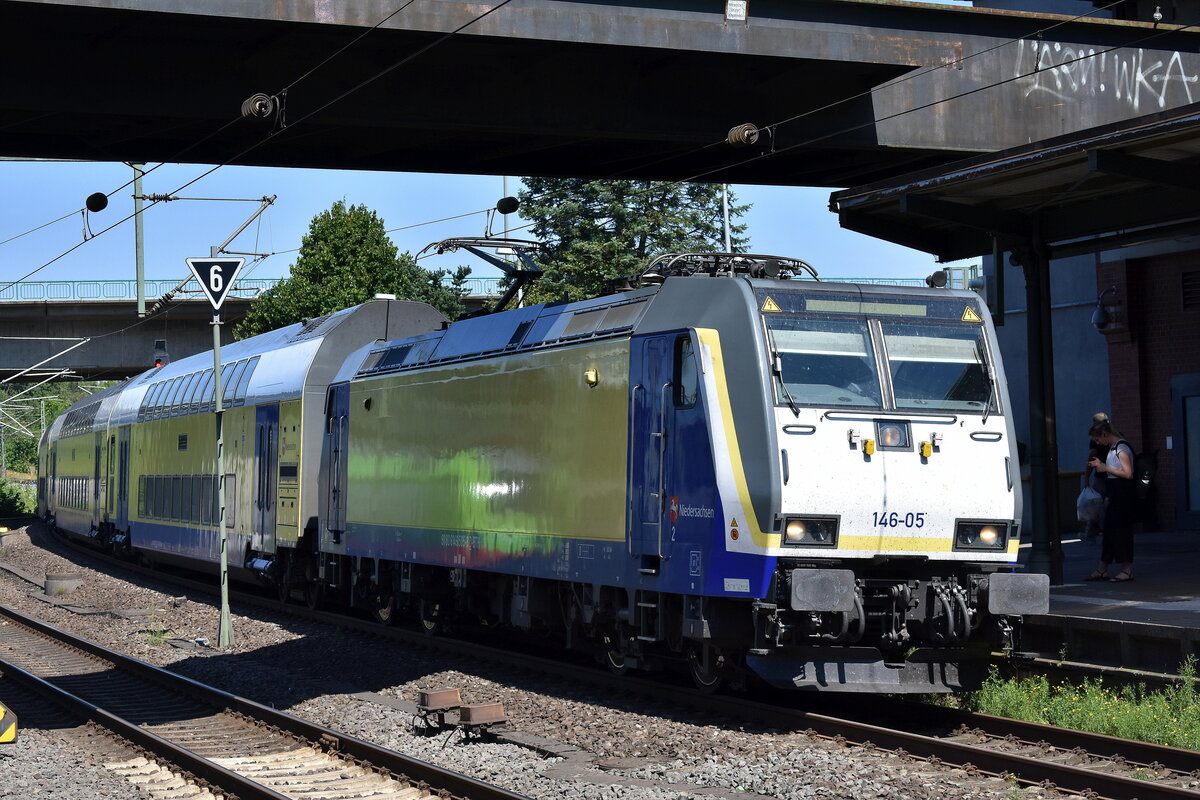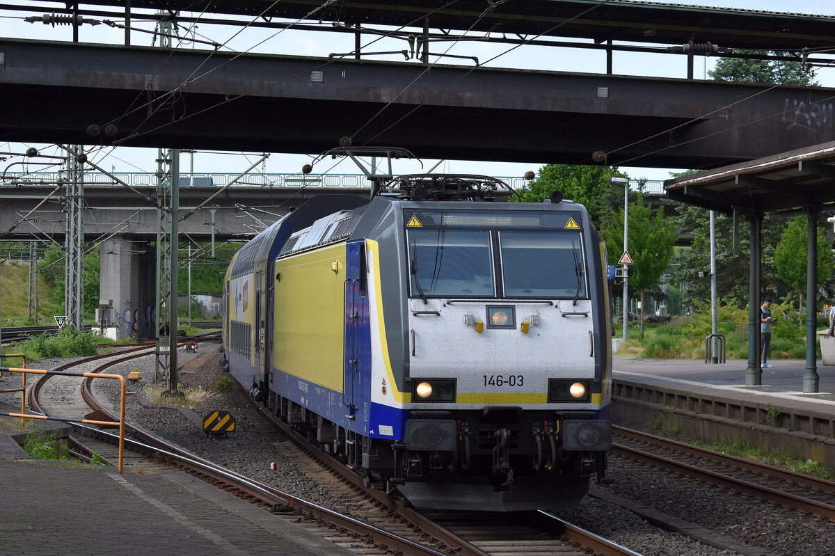 146 520-2 schiebend auf Gleis 1 am Verstärker-Zug für den RE1 von Düsseldorf in Richtung Köln Hbf.