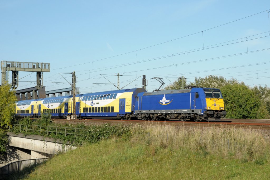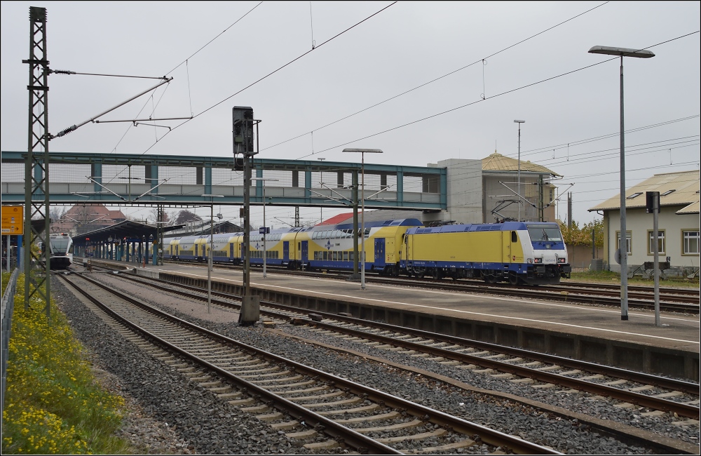 146 541 mit 7 Metronom-Dostos aus Niedersachsen auf Testfahrt auf der Rheintal- und Schwarzwaldbahn. Aufgenommen am 13.11.2012 bei Forchheim. Gregor Kaercher