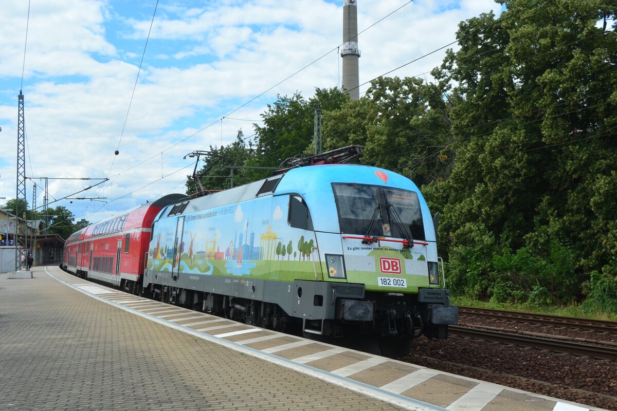 DB Regio AG - Region Nordost, Fahrzeugnutzer: Regionalbereich Berlin/Brandenburg, Potsdam mit ihrer "182 006" [NVR-Nummer: 91 80 6182 006-7 D-DB] mit 112 156-5 (NVR: "91 80 6112 156-5 D-DB") am Haken auf Dienstfahrt Richtung Bahnhof Berlin Lichtenberg am 04.07.24 Höhe Bahnhof Berlin-Hohenschönhausen. Lothar Stöckmann