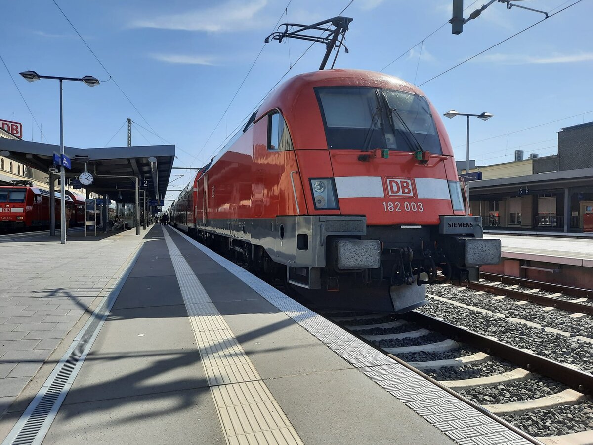 Eine interessante Geschichte hat die 182 506 von DB Systemtechnik. Im Jahre 2002 wurde sie als ES 64 U2-006 an Dispolok ausgeliefert. Die ersten Jahre stand die Maschine bei TXLogistik im Einsatz. 2013 erfolgte dann der Verkauf an DB Systemtechnik. Damit einhergehend wechselte die Lackierung von gelb-silber auf verkehrsrot. Haupteinsatzgebiet sind Messzüge auf dem elektrifizierten Streckennetz der DB. Am 19. Mai 2025 fuhr 182 506 mit einem Mess- und einem IC Steuerwagen bei Esslingen in Richtung Treuchtlingen und konnte von mir in der für das Altmühltal typischen Landschaft fotografiert werden. Christoph Schneider