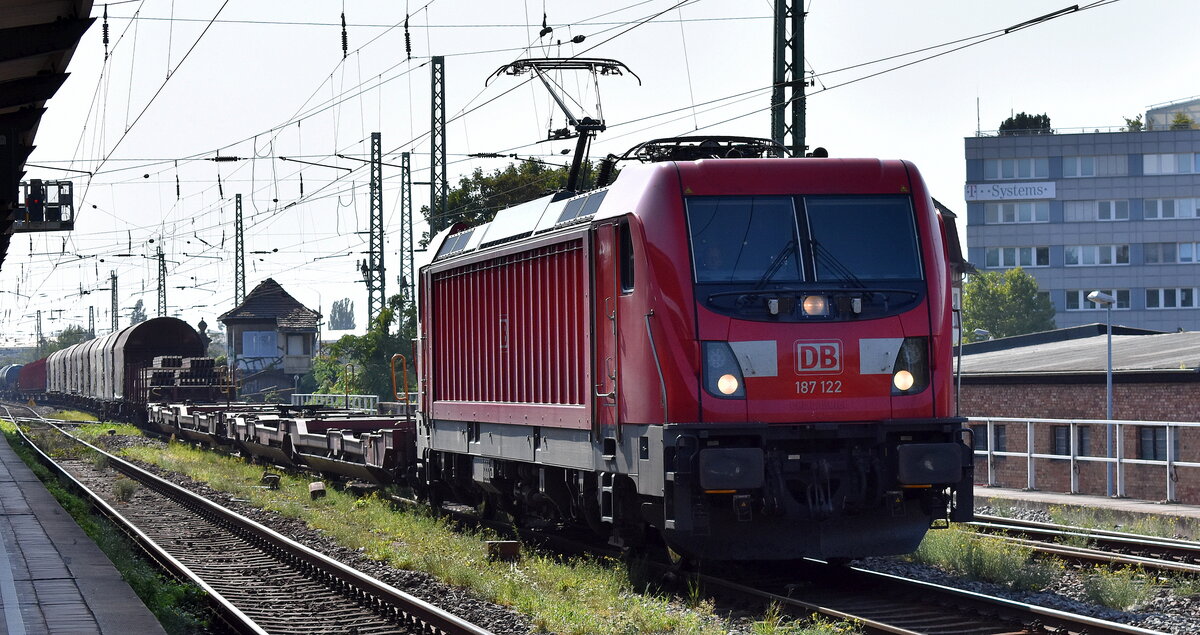DB Cargo AG, Mainz mit ihrer "187 122" [NVR-Nummer: 91 80 6187 122-7 D-DB] und einem gemischten Güterzug am 05.09.24 Höhe Bahnhof Magdeburg-Neustadt. Lothar Stöckmann