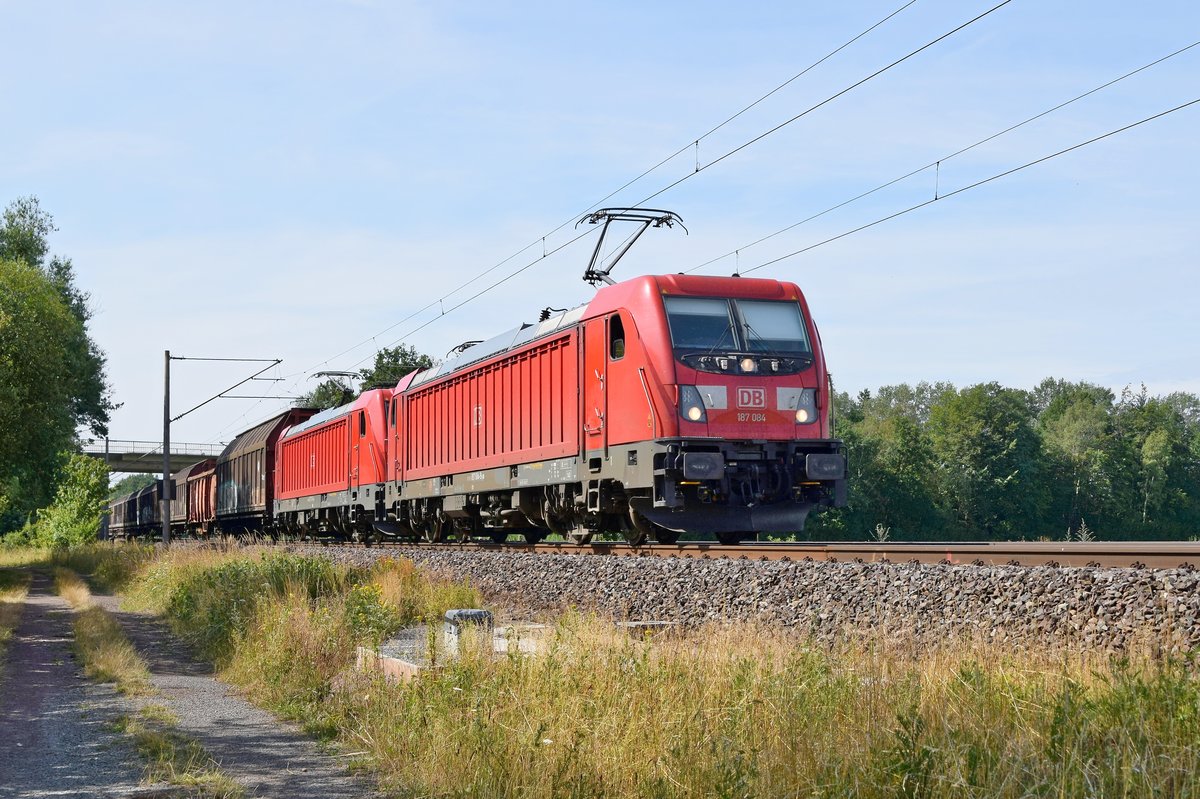 187 182-1 DB als Tfzf fährt in Halle-Kanena/Bruckdorf auf der Bahnstrecke Magdeburg–Leipzig (KBS 340) Richtung Halle (Saale).