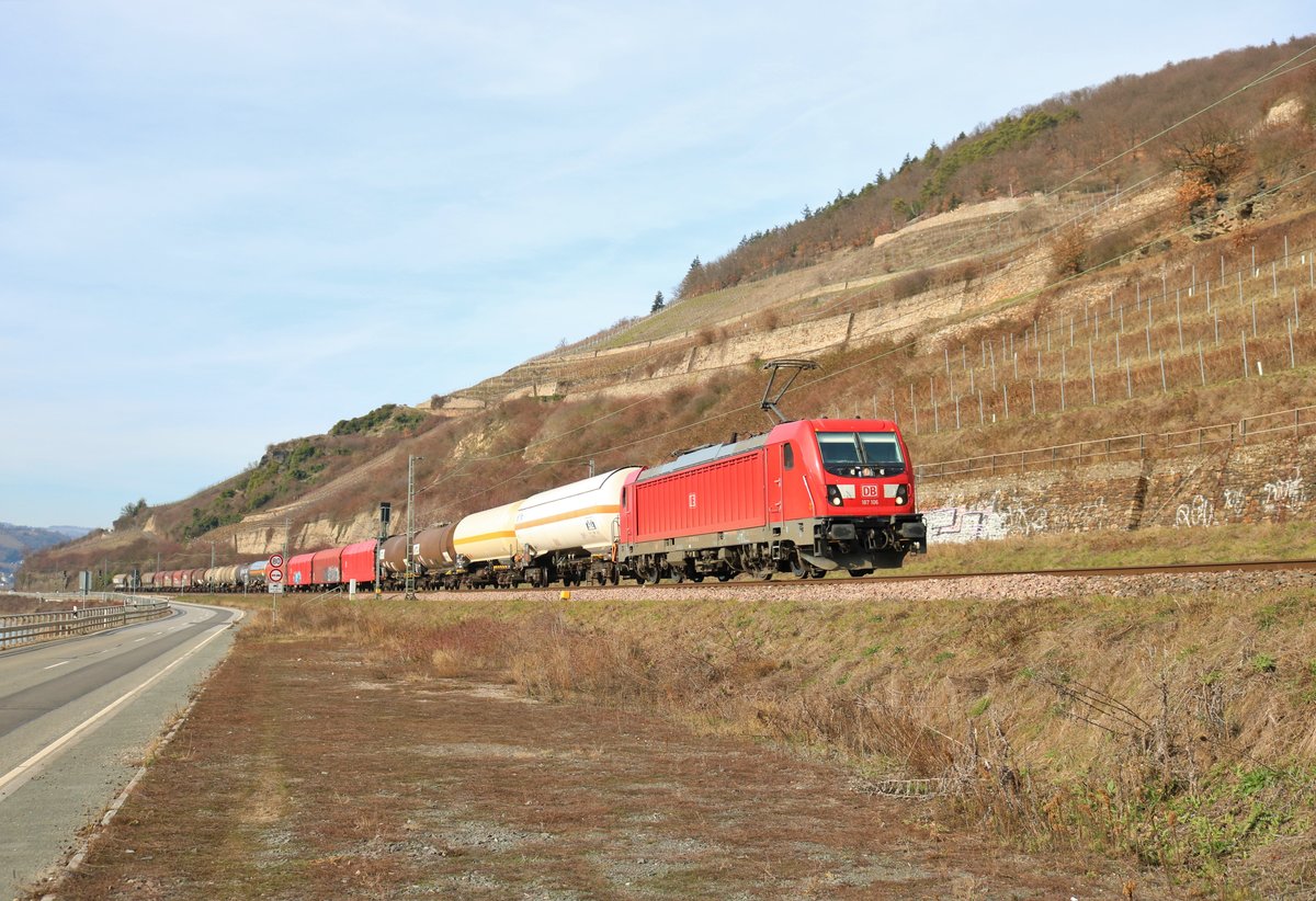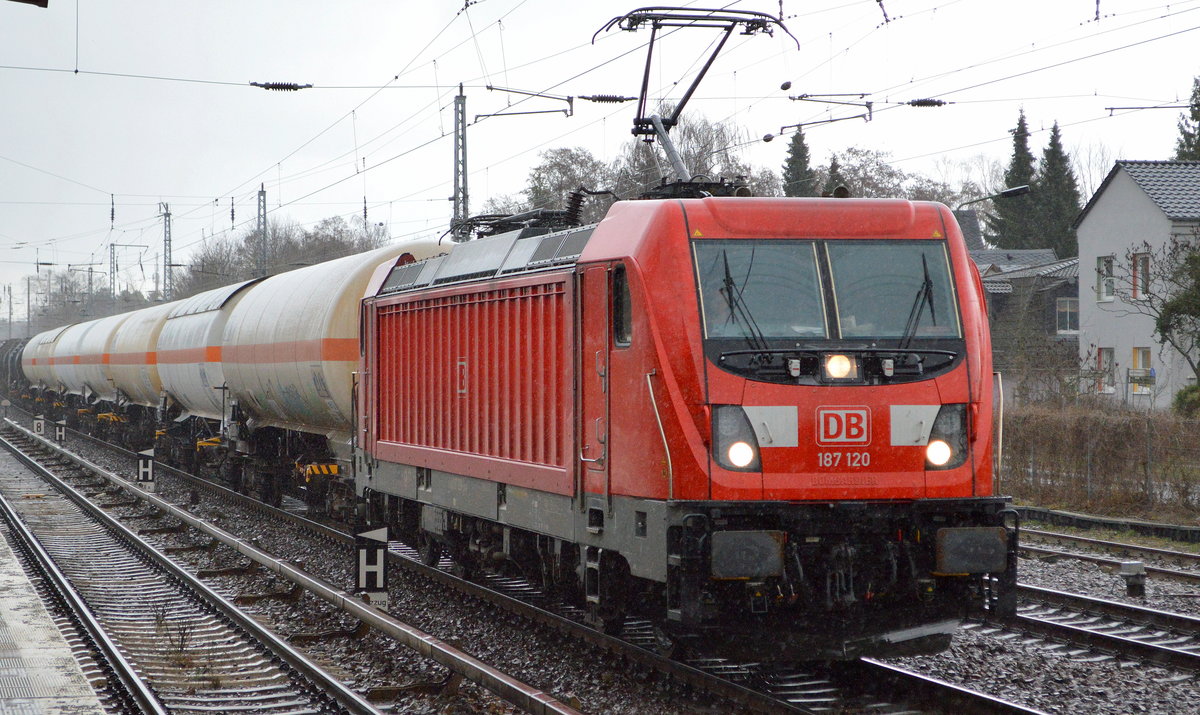 DB Cargo Deutschland AG mit "187 101" [NVR-Number: 91 80 6187 101-1 D-DB] und gemischtem Kesselwagenzug am 04.03.19 Bf. Flughafen Berlin-Schönefeld. Lothar Stöckmann
