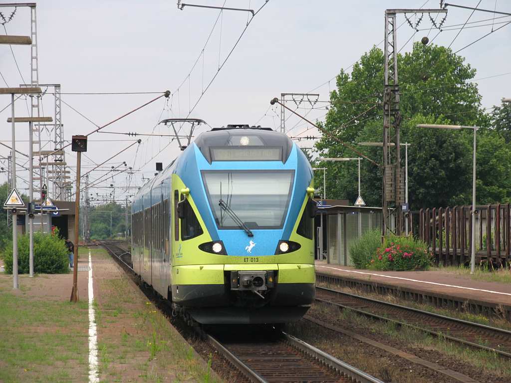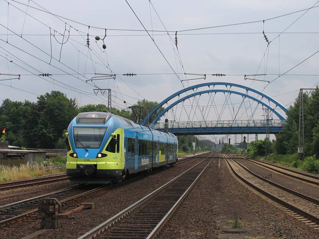 Am 02.07.12 war ET 131 der Berchtesgadener Landbahn auf dem Weg zum Bahnhof Freilassing, hier passiert der Triebwagen die Ortschaft Freilassing. Martin Schneider