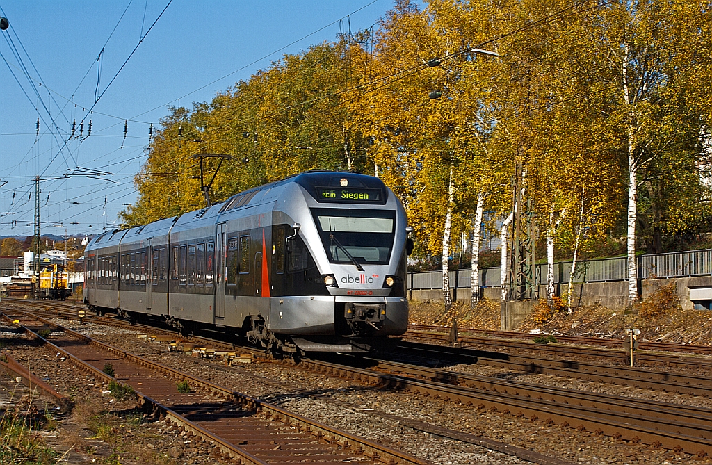 ET 23002 (3-teiliger Stadler Flirt) der Abellio Rail NRW fährt am 21.10.2012 von Kreuztal weiter in Richtung Siegen. Er fährt die Strecke Essen-Hagen-Siegen (RE 16 Ruhr-Sieg-Express). Armin Schwarz