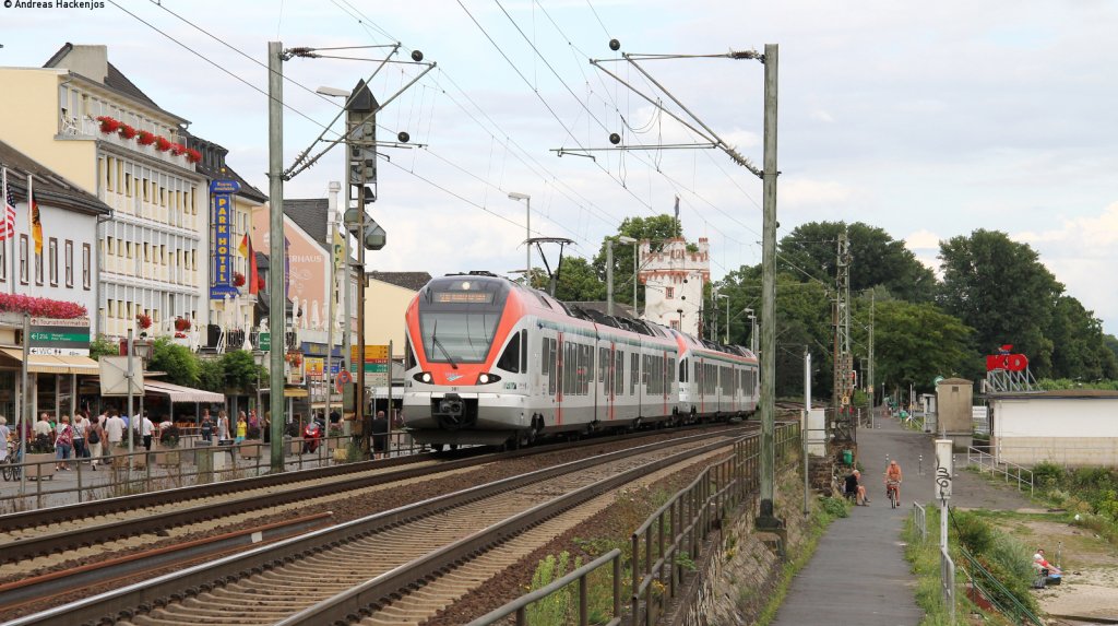 Der Vias 303 Triebwagen mit einem unbekannten Bruder bei seiner Fahrt von Frankfurt/Main nach Koblenz Hbf in Rüdesheim am Rhein am Bahnübergang am Bahnhof....Freitag 21.9.2012 Andreas Strobel