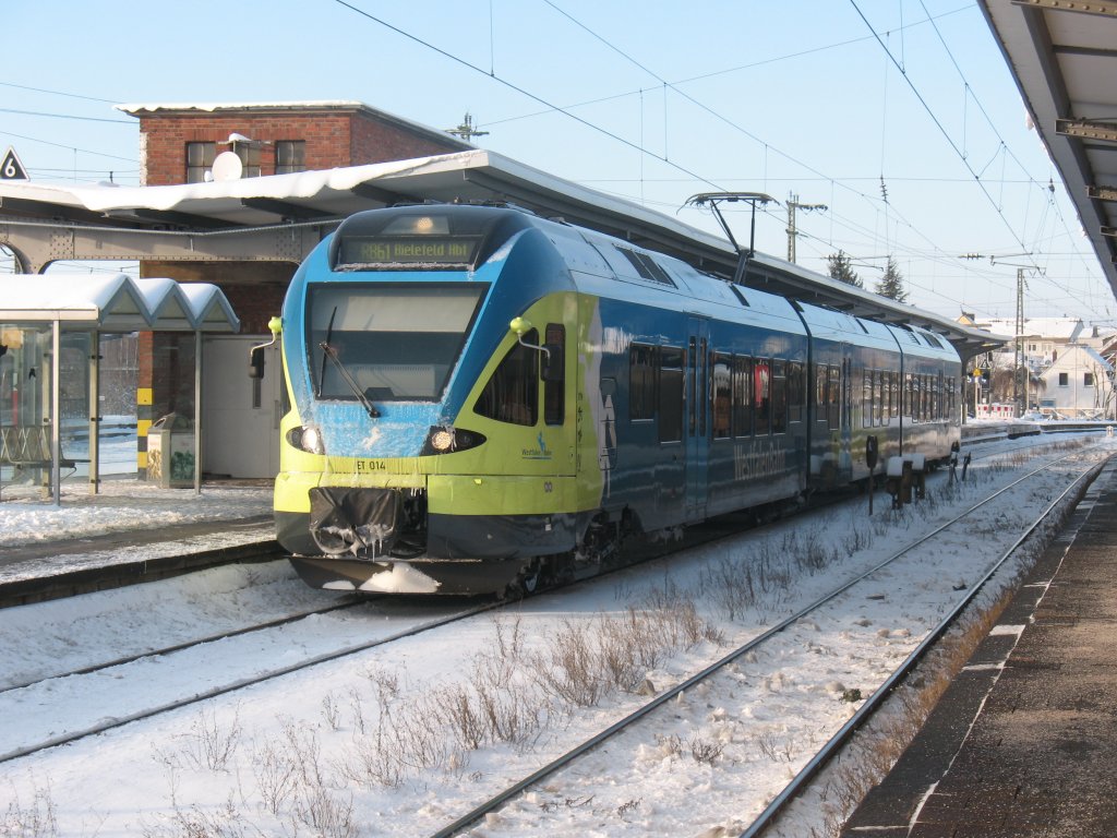 Einfahrt der Cantus (427 555) in den Stadtbahnhof Eschwege als R7 aus Bebra zur Weiterfahrt nach Göttingen am diesigen Morgen des 13.01.2011. Jens Baumhauer