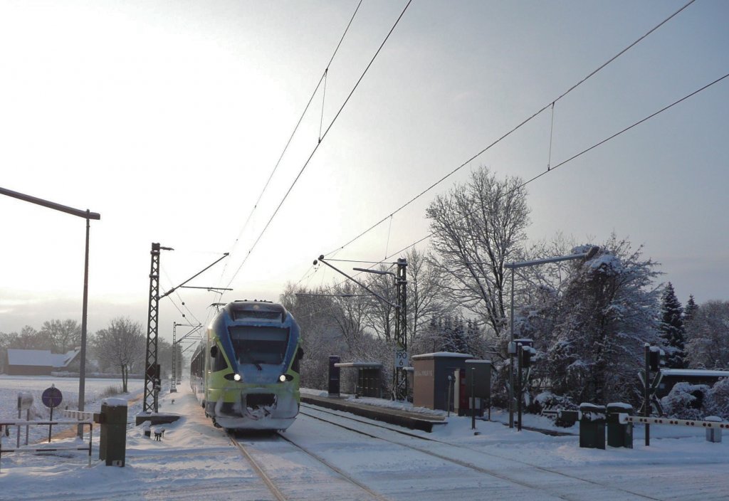 Melde mich zurück aus der Feiertags-Pause. Dieser gefrostete Cantus-Flirt wollte seine Betriebsnummer lieber für sich behalten. Aufgenommen am 09.12.2010 am Bü Eltmannshausen/Oberhone. Jens Baumhauer