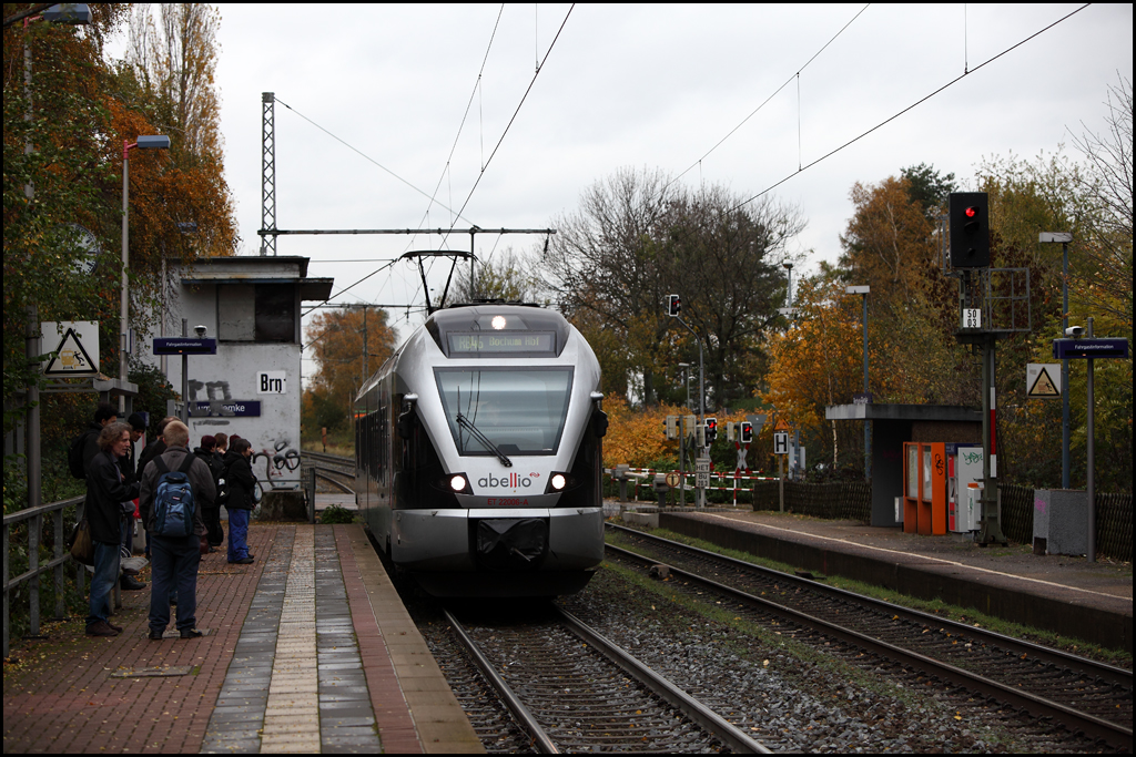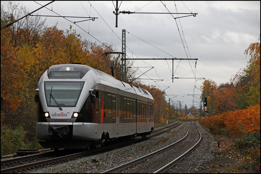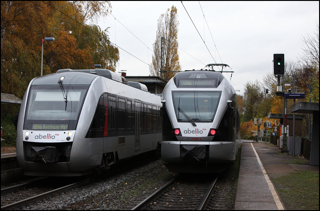 GLÜCKAUF-Bahn Treffen... ET22006 ist als RB46 nach Gelsenkirchen Hbf unterwegs und trifft auf VT11003 "HERNE" der als RB46 nach Bochum Hbf unterwegs ist... (Bochum-Rimcke am 04.11.2010) Florian Böttcher