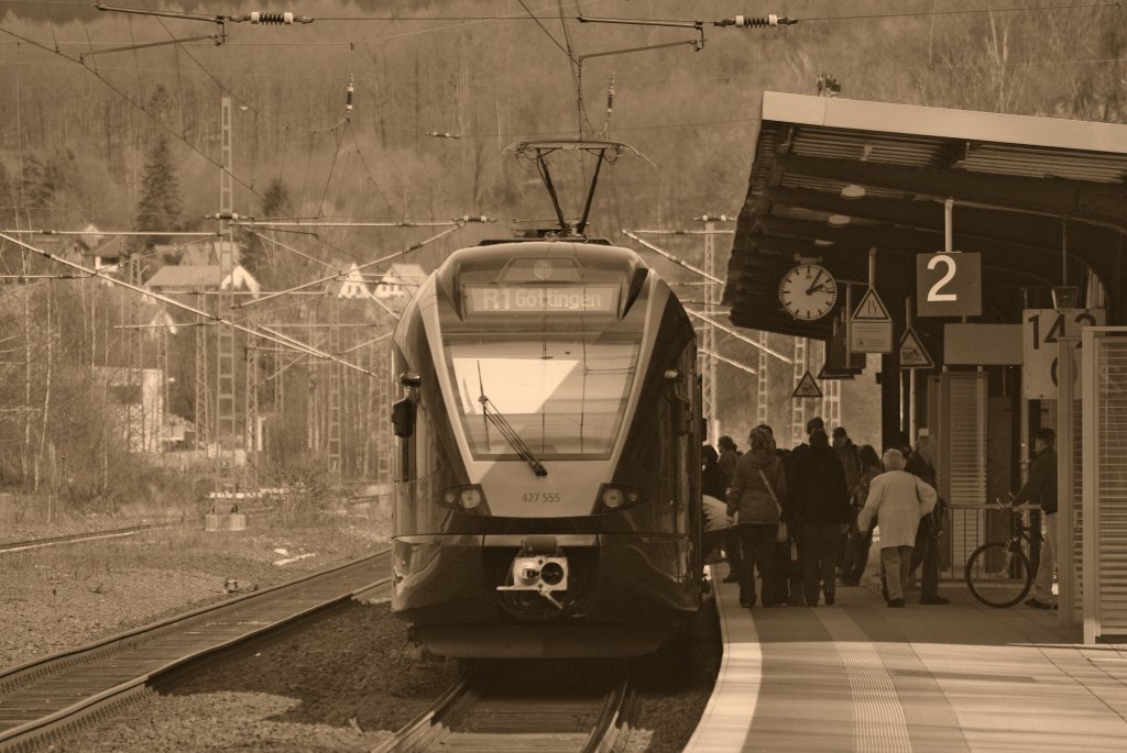 Bahnalltag in Hannoversch Münden. R1 der Cantus (427 555) zwischen Kassel und Göttingen beim Halt in Hann. Münden. Aufgenommen am 31.03.2010. Jens Baumhauer