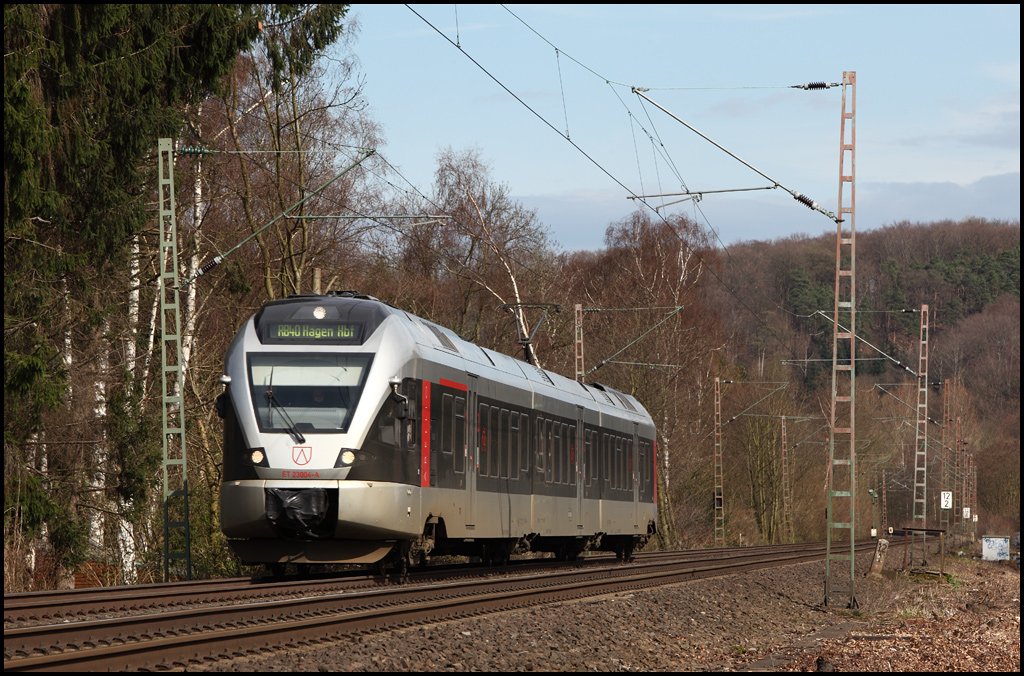 Während andere noch schlafen wollte ich den morgendlichen AUDI-Zug aufnehmen, natürlich wurde der Zug an der Fotostelle um ca. 1 min verpasst... Dafür konnte ich ET23004 "HAGEN" und ET23006 "SIEGEN" als ABR37836 (RB91 "Ruhr-Sieg-Bahn" vor Hohenlimburg ablichten. (24.04.2010) Florian Böttcher