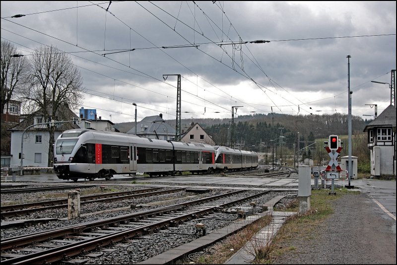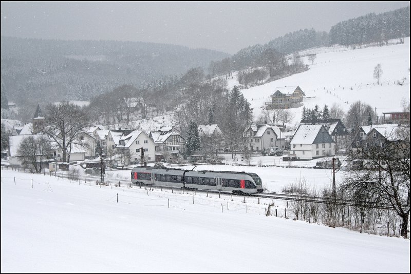 Ein paar Kilometer weiter Nördlich von Benolpe ist die Schnee verschwunden.... ET22004 fährt als ABR99724 (RB91 "Ruhr-Sieg-Bahn") die Steigung hinauf. (22.03.2008) Florian Böttcher
