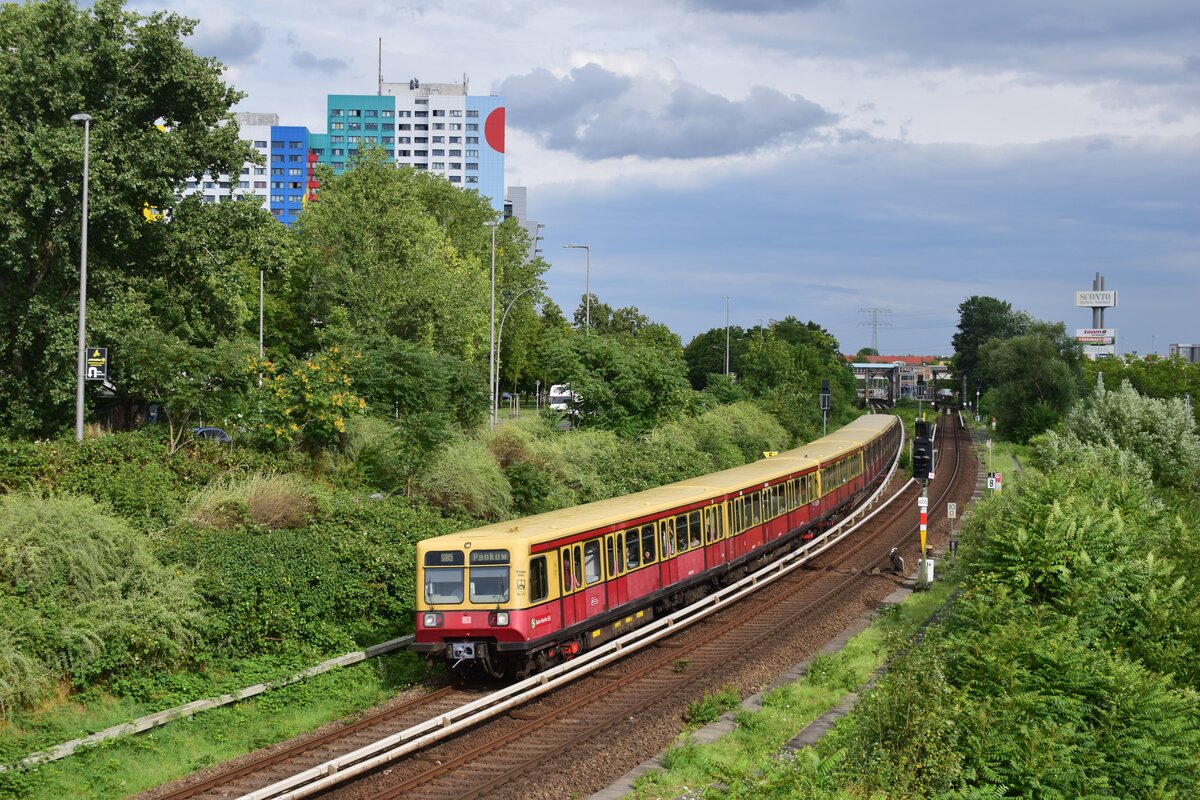 Mittlerweile sind die Züge der Baureihe 485 verschwunden. Im Sommer 2023 fuhren sie noch auf einigen Umläufen. So hatte ich am Abend des 25.7.2023 das Glück einen Umlauf der Baureihe 485 auf der S85 zu erwischen. Leider war der Zug mit Grafitti beschmiert was bestmöglich versucht wurde weg zu machen.