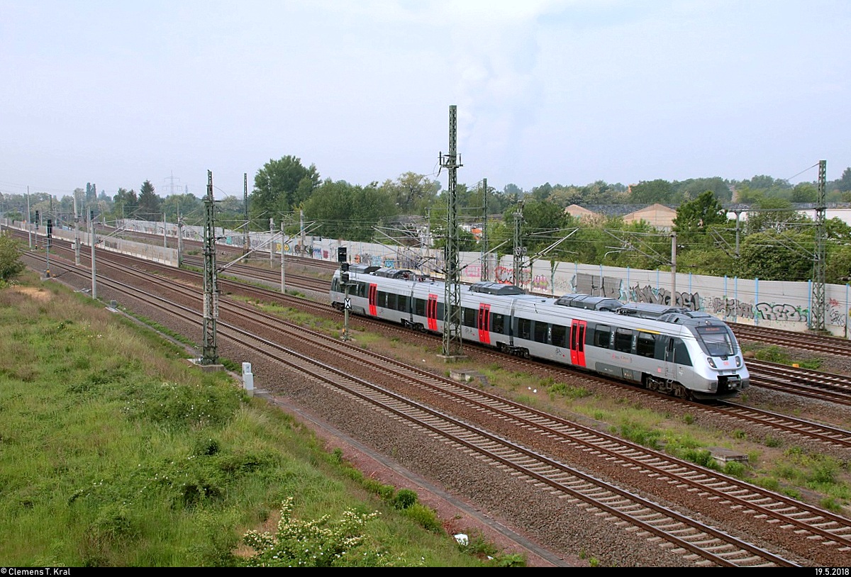 1442 165 (Bombardier Talent 2) der S-Bahn Mitteldeutschland (MDSB II | DB Regio Südost) als S 37710 (S7) von Halle(Saale)Hbf Gl. 13a nach Halle-Nietleben passiert den Abzweig Thüringen (At).