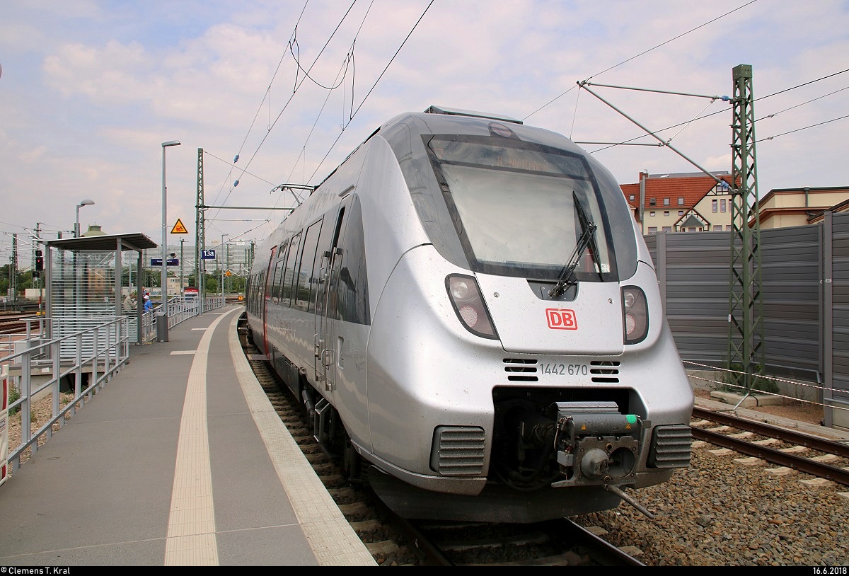 1442 670 (Bombardier Talent 2) der S-Bahn Mitteldeutschland (MDSB II | DB Regio Südost) als S 37730 (S7) nach Halle-Nietleben steht in ihrem Startbahnhof Halle(Saale)Hbf Gl. 13a.
