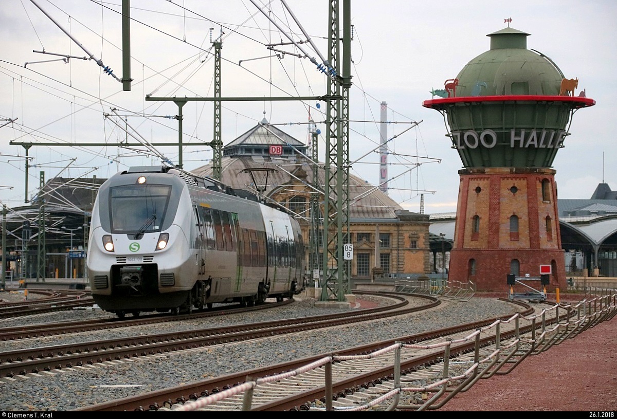 1442 662 (Bombardier Talent 2) der S-Bahn Mitteldeutschland (MDSB II | DB Regio Südost) als S 37916 (S9) von Eilenburg nach Halle(Saale)Hbf durchfährt das Gleisvorfeld von Halle(Saale)Hbf. Aufgenommen von der Delitzscher Straße. [26.1.2018 | 15:24 Uhr] Clemens Kral
