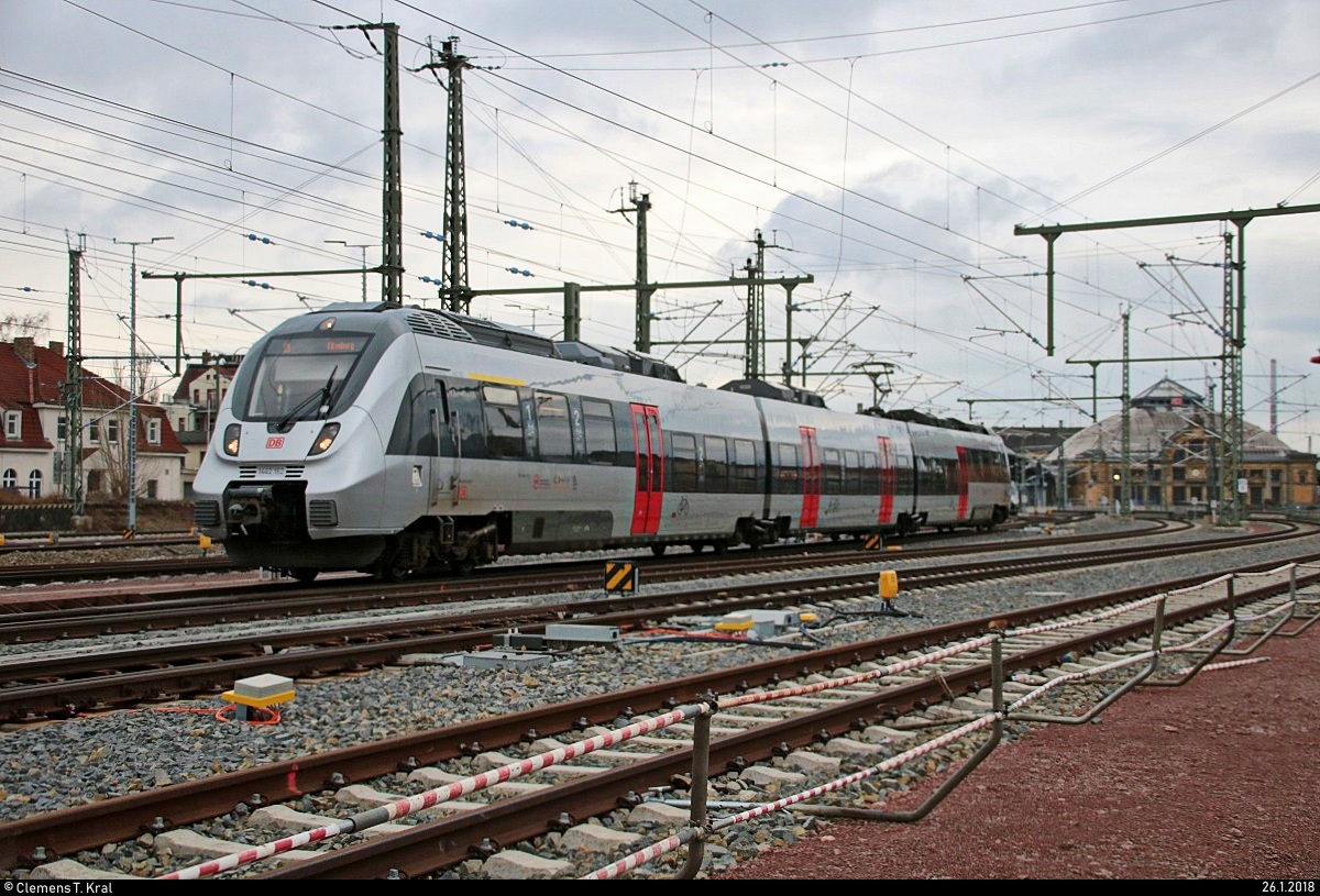 1442 663 (Bombardier Talent 2) der S-Bahn Mitteldeutschland (MDSB II | DB Regio Südost) als S 37845 (S8) von Dessau Hbf bzw. RB 16483 von Magdeburg Hbf nach Halle(Saale)Hbf kurz vor Erreichen ihres Endbahnhofs. Aufgenommen von der Delitzscher Straße. [26.1.2018 | 15:11 Uhr] Clemens Kral