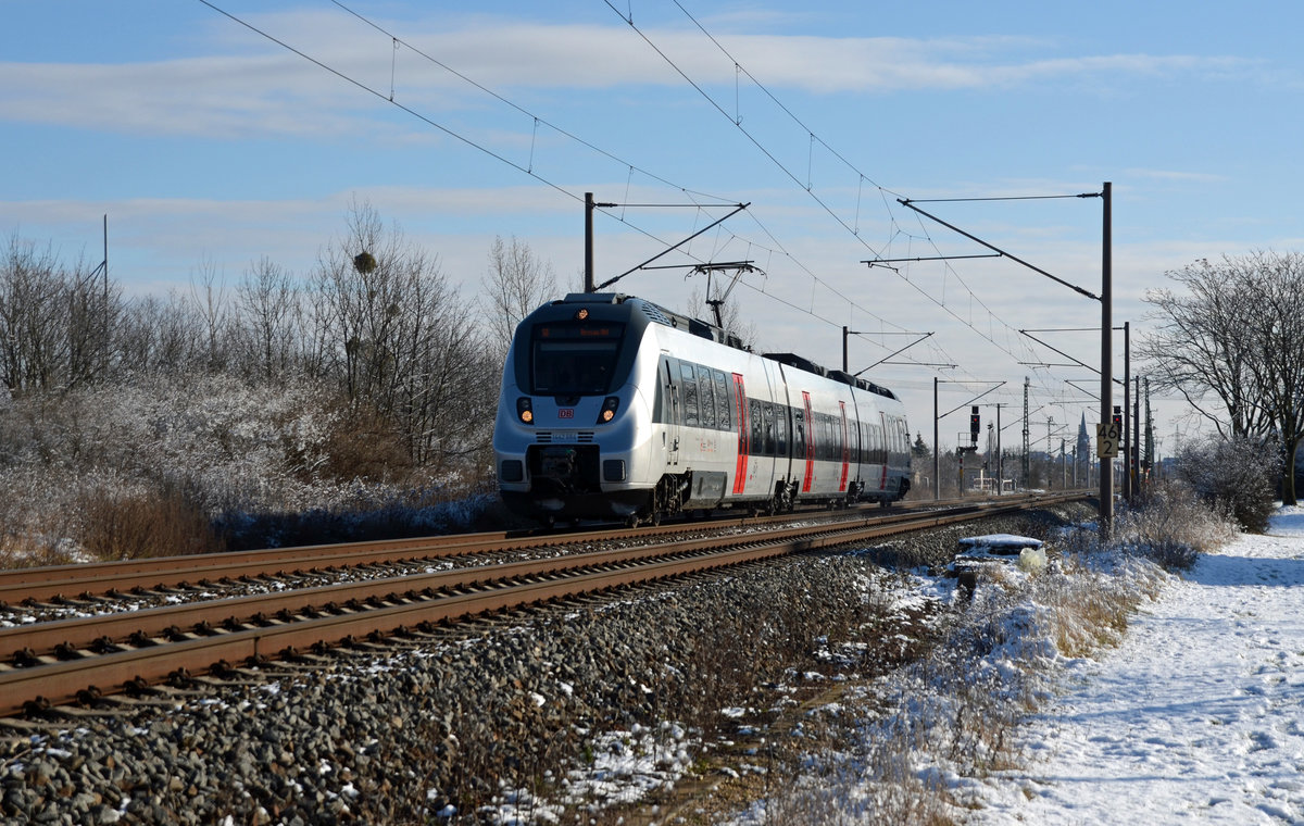 Nachschuss auf 1442 134 (Bombardier Talent 2) der S-Bahn Mitteldeutschland (DB Regio Südost) als S 37741 (S7) von Halle-Nietleben nach Halle(Saale)Hbf Gl. 13a, die in Halle (Saale), Kasseler Straße, auf der Bahnstrecke Halle–Hann. Münden (KBS 590) fährt. [29.12.2017 | 14:38 Uhr] Clemens Kral