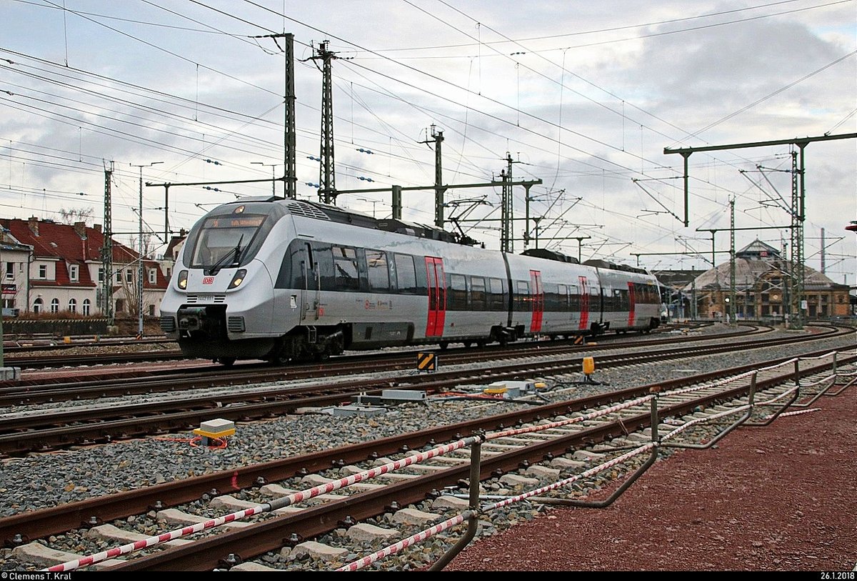 1442 677 (Bombardier Talent 2) der S-Bahn Mitteldeutschland (MDSB II | DB Regio Südost) als S 37849 (S8) von Lutherstadt Wittenberg Hbf nach Halle(Saale)Hbf durchfährt das Gleisvorfeld ihres Endbahnhofs. Aufgenommen von der Delitzscher Straße. [26.1.2018 | 16:09 Uhr] Clemens Kral