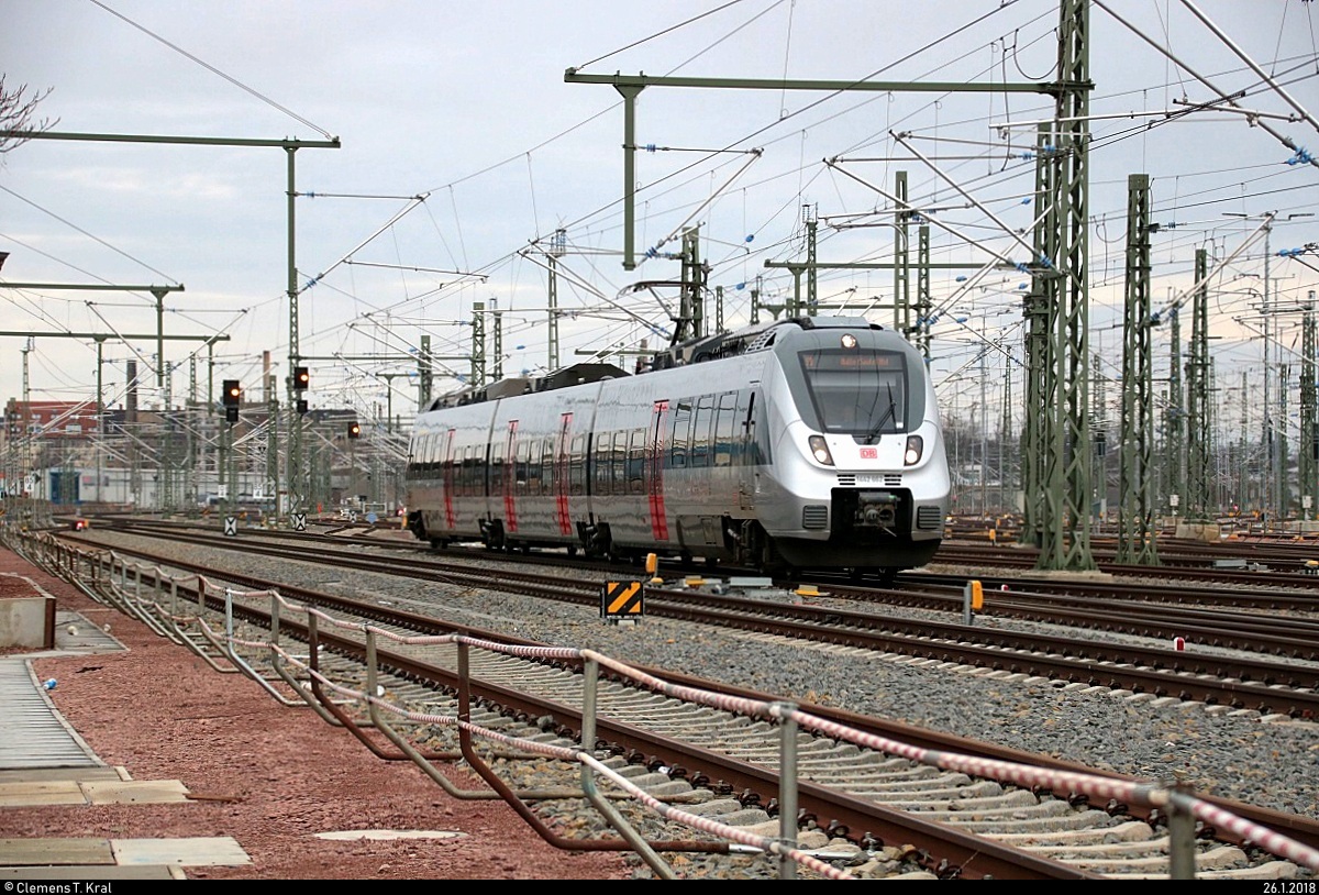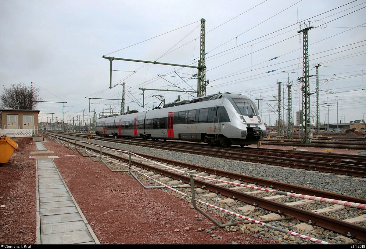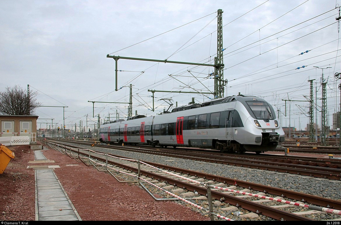 1442 661 (Bombardier Talent 2) der S-Bahn Mitteldeutschland (MDSB II | DB Regio Südost) als S 37854 (S8) von Halle(Saale)Hbf nach Lutherstadt Wittenberg Hbf durchfährt das Gleisvorfeld von Halle(Saale)Hbf. Aufgenommen von der Delitzscher Straße. [26.1.2018 | 15:52 Uhr] Clemens Kral