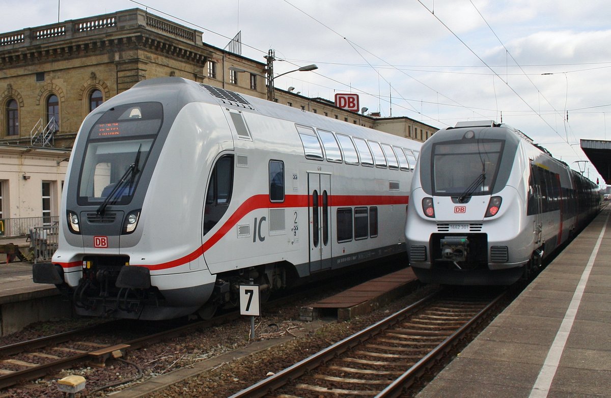 IC2036 von Leipzig Hauptbahnhof nach Norddeich Mole trifft am 7.4.2017 im Magdeburger Hauptbahnhof auf 1442 663-9 und 1442 165-5 als RE13 (RE16111) nach Leipzig Hauptbahnhof. Alexander