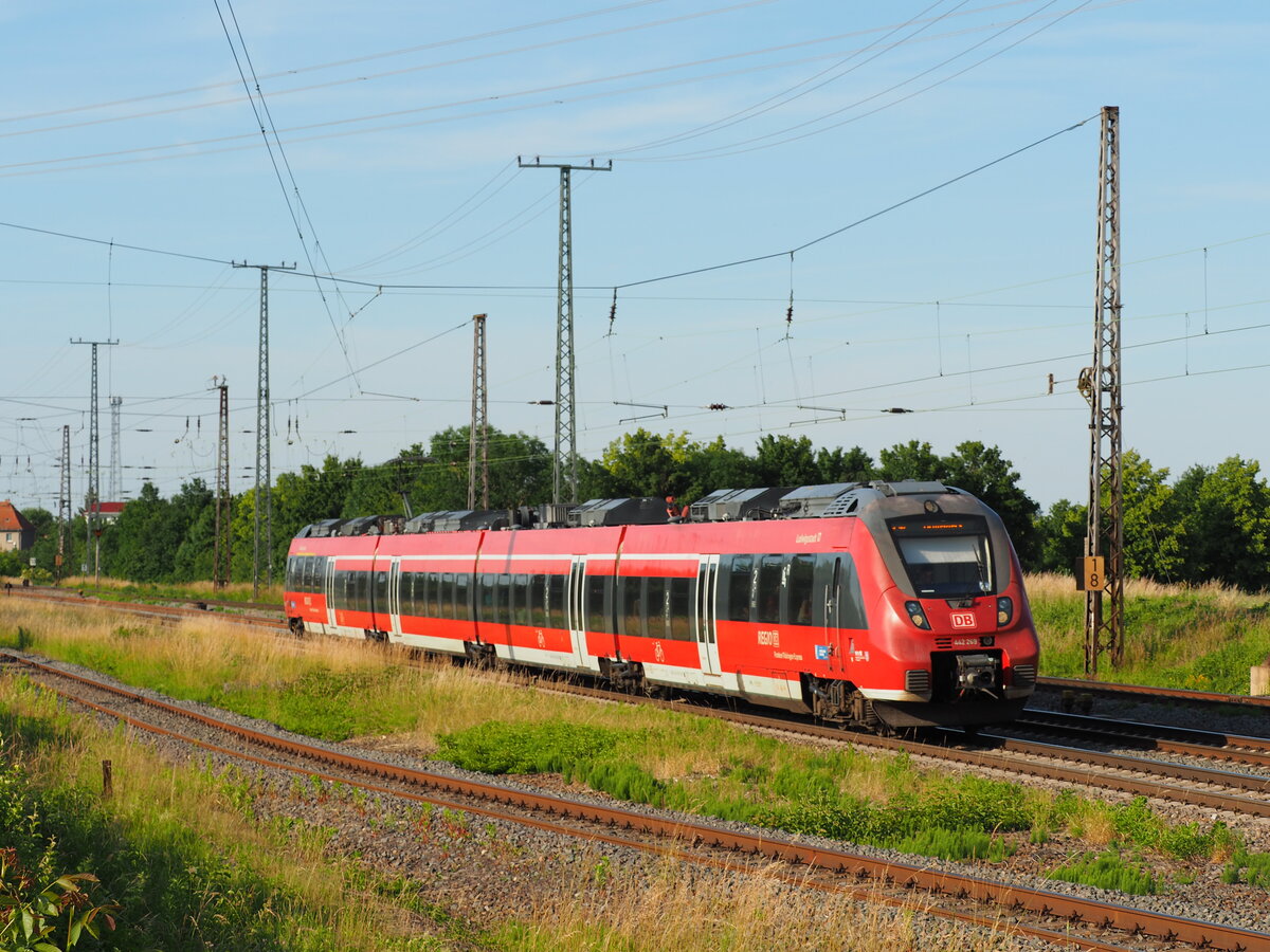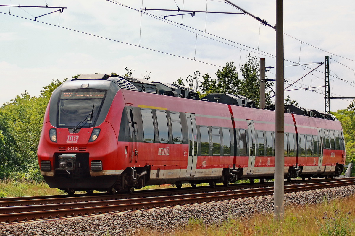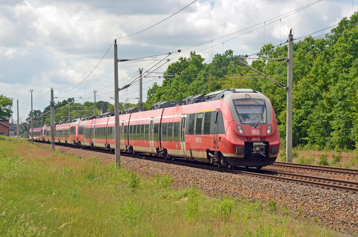 Drei fünfteilige Talent-2-Triebzüge rollten am 06.06.22 durch Burgkemnitz Richtung Wittenberg. Angeführt von 442 331 folgten 442 332 und 442 351. Martin Schneider