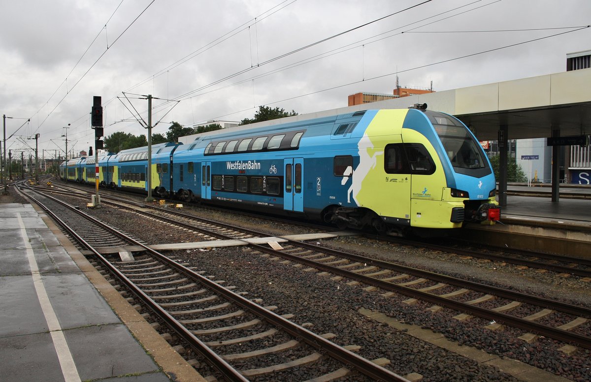 RHEINE (Kreis Steinfurt), 04.08.2017, ET 609 der Westfalenbahn als RE60 nach Braunschweig Hbf fährt auf Gleis 4 ein, um von dort die Tour nach Braunschweig zu starten Reinhard Zabel
