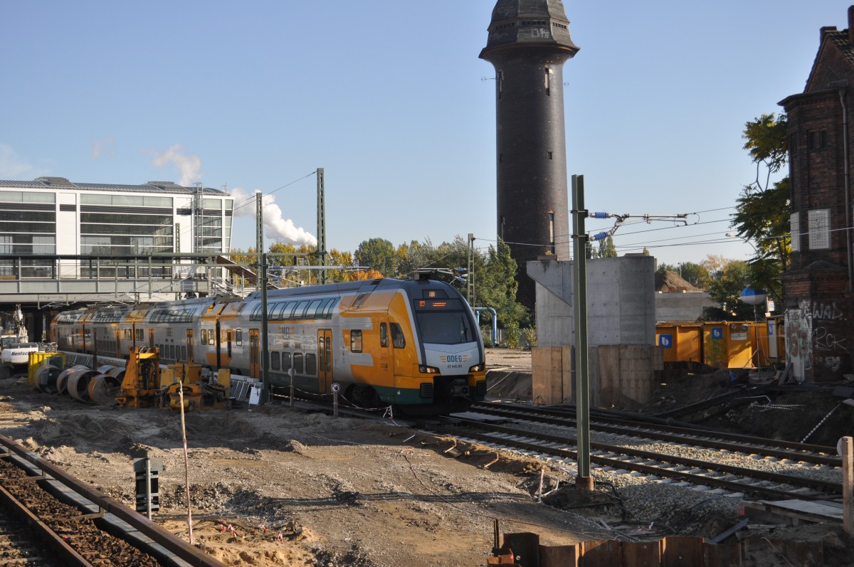 ET 445.107 "Lübben" (445 107-6) ODEG - Ostdeutsche Eisenbahn GmbH als RE4 (RE 37327) von Rathenow nach Ludwigsfelde in Nennhausen. 07.10.2013 Stephan Kemnitz