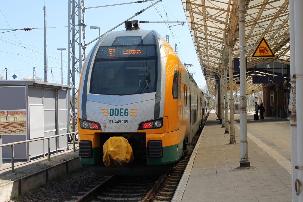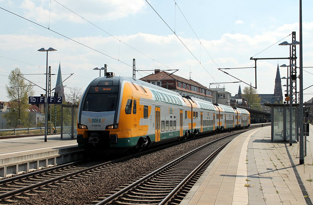 ET 445.104 (445 104-3) ODEG - Ostdeutsche Eisenbahn GmbH als RE2 (RE 37372) von Wittenberge nach Cottbus in Vietznitz. Netten Gruß an den Tf! 25.04.2013 Stephan Kemnitz
