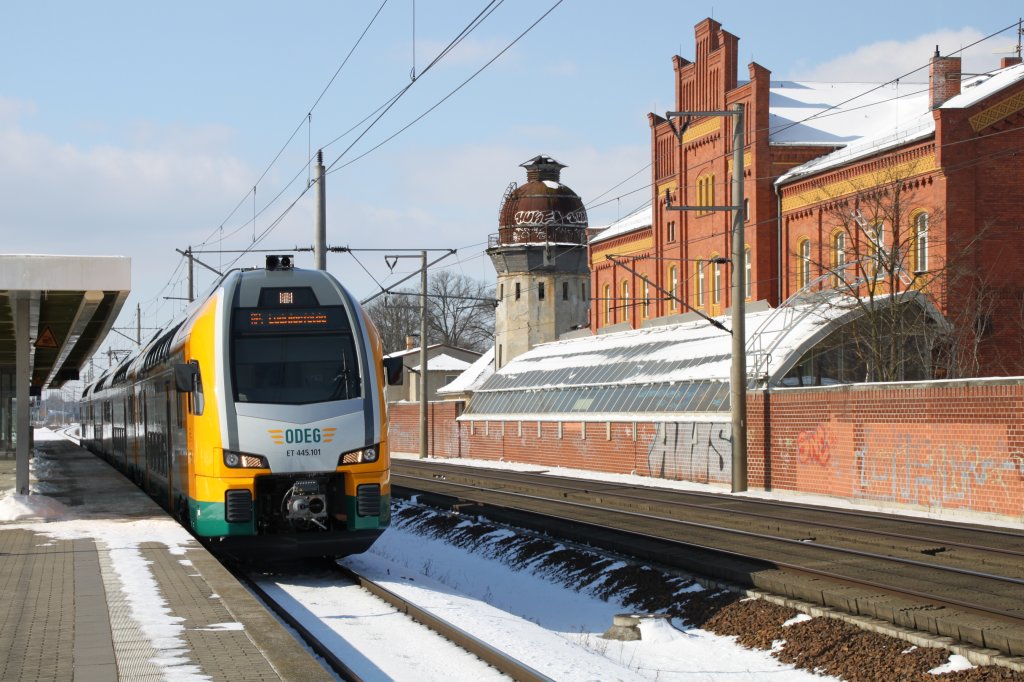 ET 445.109 (445 109-2) ODEG - Ostdeutsche Eisenbahn GmbH als RE4 (RE 37310) von Ludwigsfelde nach Rathenow, bei der Einfahrt in Rathenow. 24.02.2013 Stephan Kemnitz