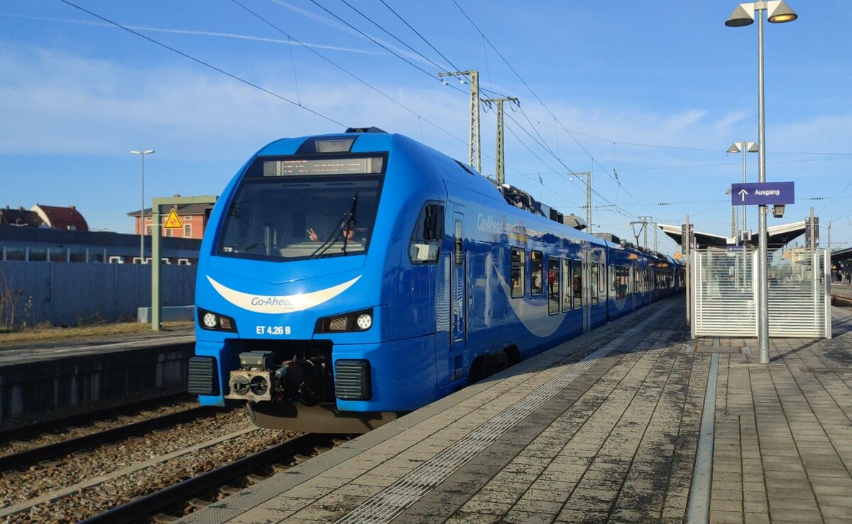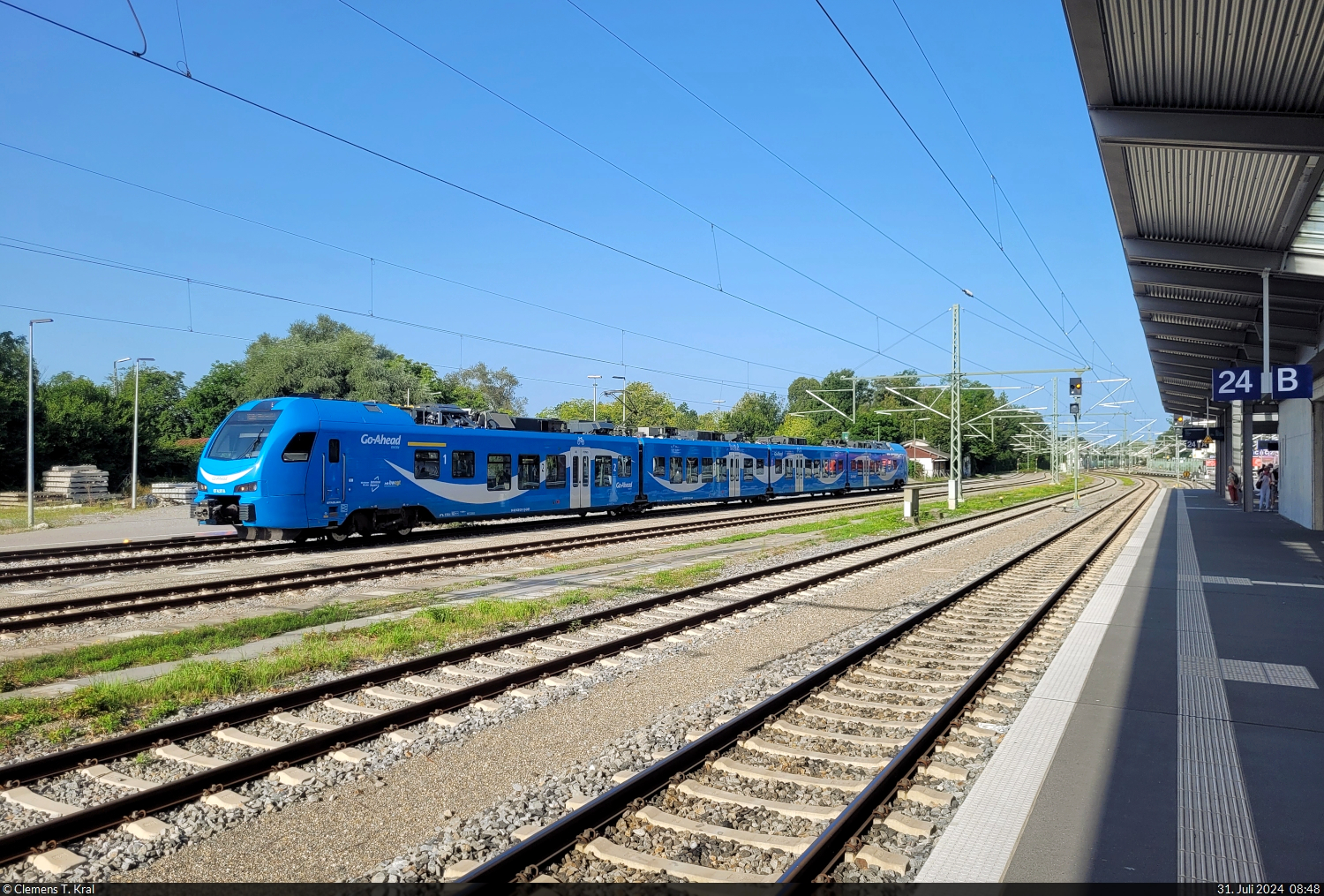 BUCHLOE (Landkreis Ostallgäu), 28.04.2025, Arverio ET 4.24 B als RB96 (Bayern) nach München Hbf bei der Ausfahrt aus dem Bahnhof Buchloe Reinhard Zabel