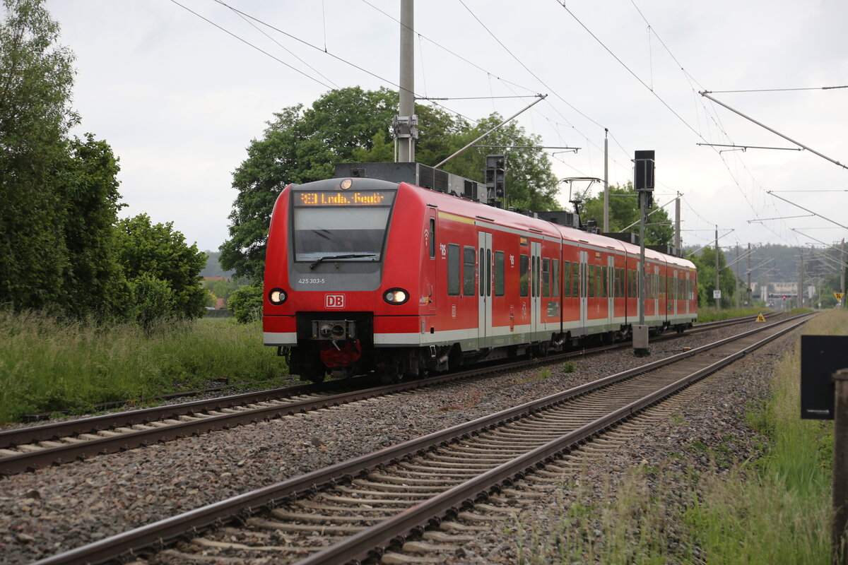 DB ET 425503-5 nach Lindau Reutin hat hier gerade am 26.5.2025 um 10.19 Uhr den Bahnhof Mochenwangen an der Südbahn verlassen.