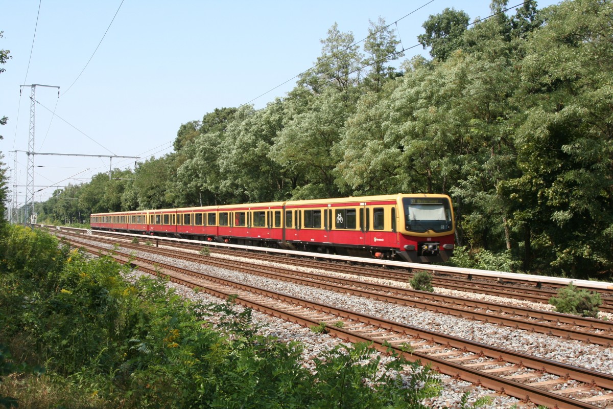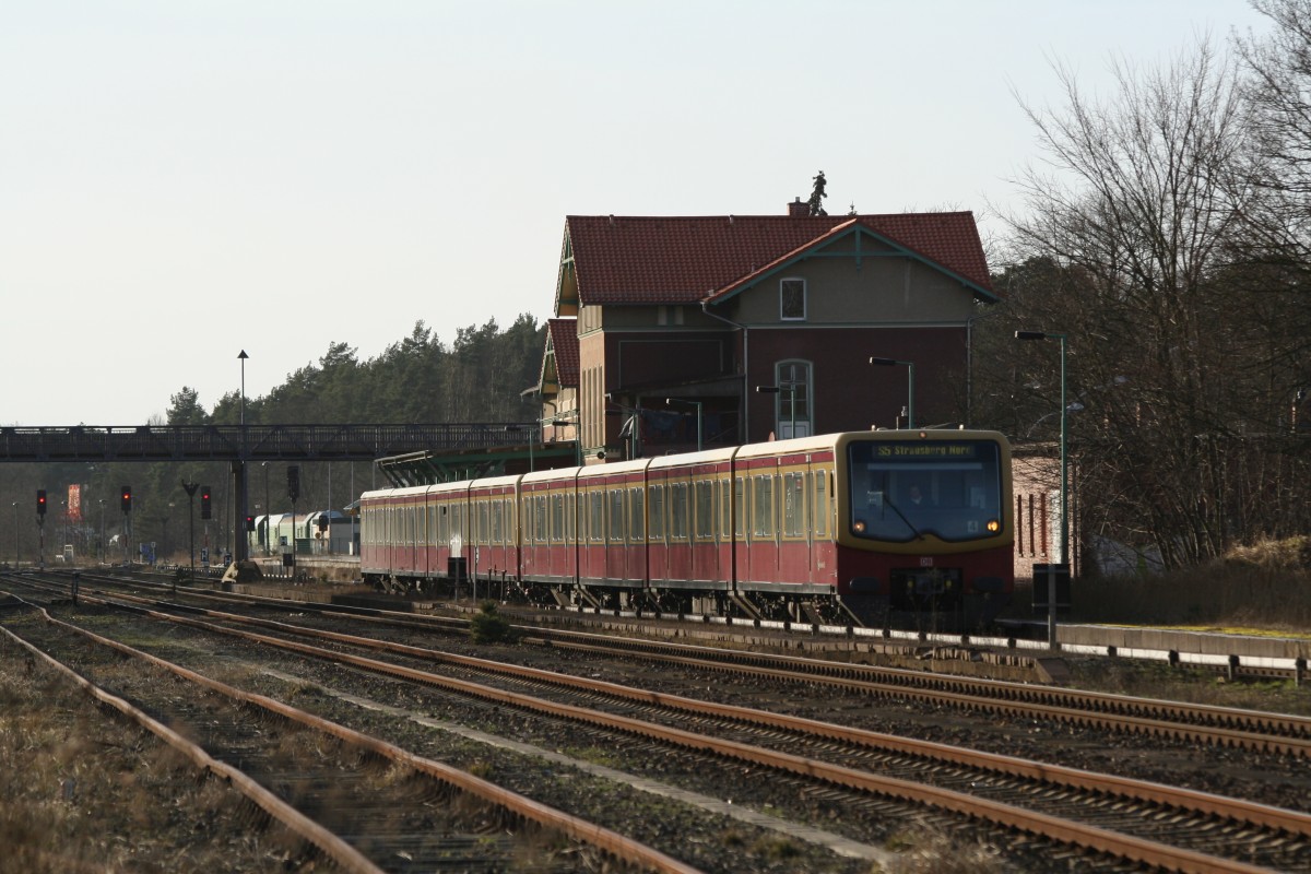 481 502-3 S-Bahn Berlin als S2 (S 2064) von Blankenfelde(Teltow-Fläming) nach Bernau(b Berlin), bei der Einfahrt in den S-Bahn Haltepunkt Röntgental. 28.03.2014 Stephan Kemnitz