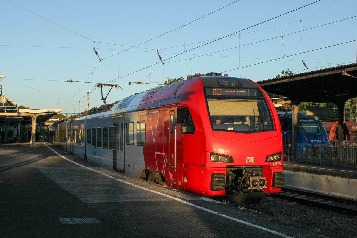 Schnappschuss mit Seltenheitsfaktor: Nur selten verirren sich die Züge der Linie RE 1 nach Neunkirchen. Da allerdings aktuell auf dem Regelweg aufgrund eines Gleislagefehlers zwischen Saarbrücken und St. Ingbert Eingleisigkeit besteht, werden die Züge der Regionalexpress-Linie 1, der Fern- und Güterverkehr nach Möglichkeit über Neunkirchen umgeleitet. 429 112 und 429 119 kommen am Abend des 18.09.2025 in Neunkirchen (Saar) Hbf zum stehen und warten auf die Weiterfahrt. Leonhard Groß