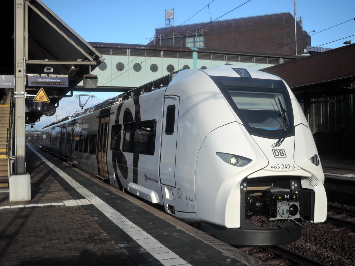 Seit gestern fahren auf der neuen "S9" die Züge der Baureihe 463. Hier steht der 463 040-6 pünktlich und abfahrtbereit um 13:58 Uhr in Hockenheim in Richtung Karlsruhe. Zumindest gestern waren die Züge sehr pünktlich unterwegs. Komforttechnisch ist der Zug ein Quantensprung zum bisher hier fahrenden 425. Jörg Ohlhaver