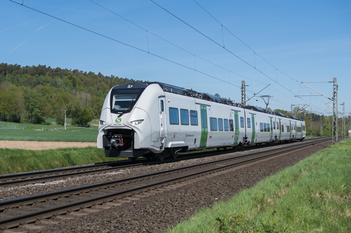 Im Nahverkehr zwischen Nürnberg und Regensburg gab es zum Fahrplanwechsel Ende 2024 einige Neuerungen. Die Linie RE 22 , der sogenannte ÜFEX (= Überregionaler Flughafen Express) wurde nach Nürnberg ausgeweitet. Sie wird in Kooperation von agilis und DB-Regio Bayern betrieben. Dabei kommen neue Triebzüge vom Typ Mireo aus dem Hause Siemens zum Einsatz. Am 03. April 2025 konnte ich den 1463 003 als RE 59491 nach München Flughafen Terminal bei Darshofen in der Oberpfalz fotografieren. Christoph Schneider