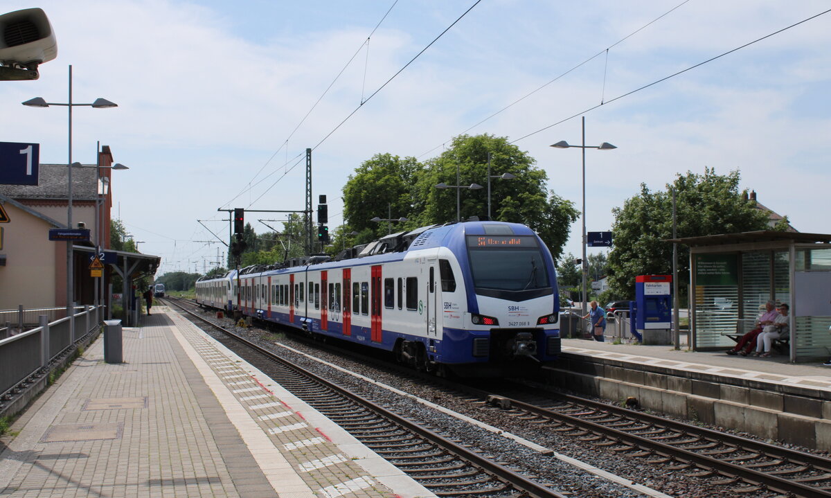 Auf der Hannoveraner S-Bahn-Linie 7 kommen Flirt 3 XL zum Einsatz. Am 4.10.2024 war 3 427 035 als S 34723 auf dem Weg von Celle nach Hannover und erreicht in Kürze Burgdorf.