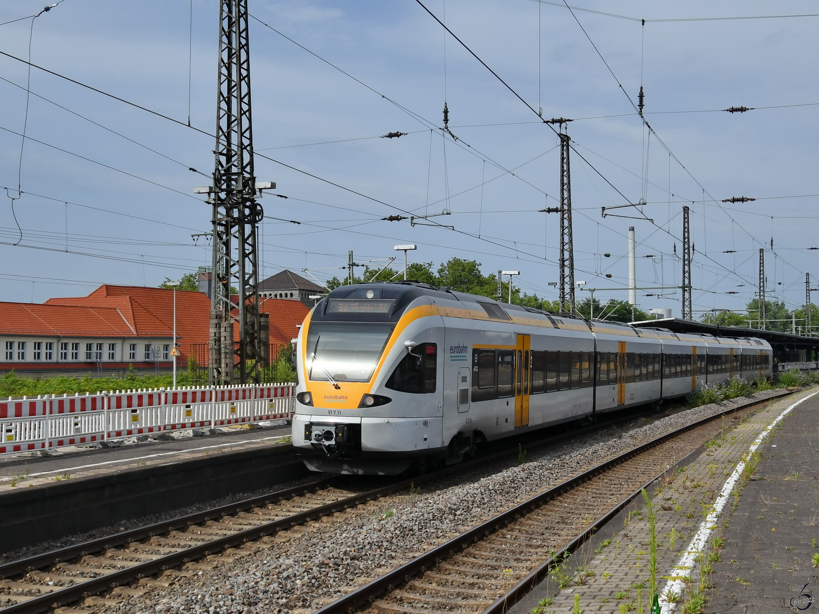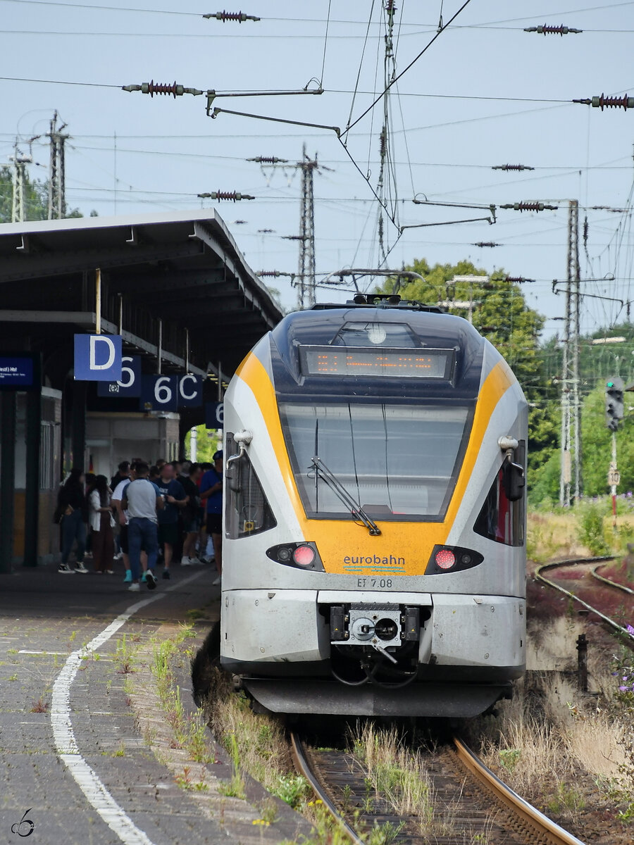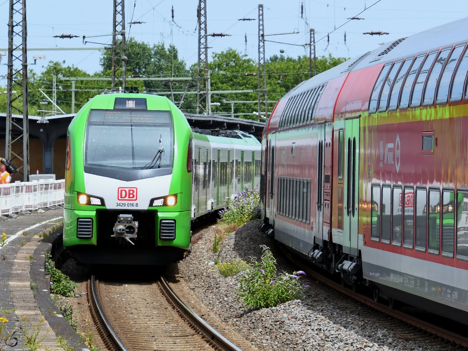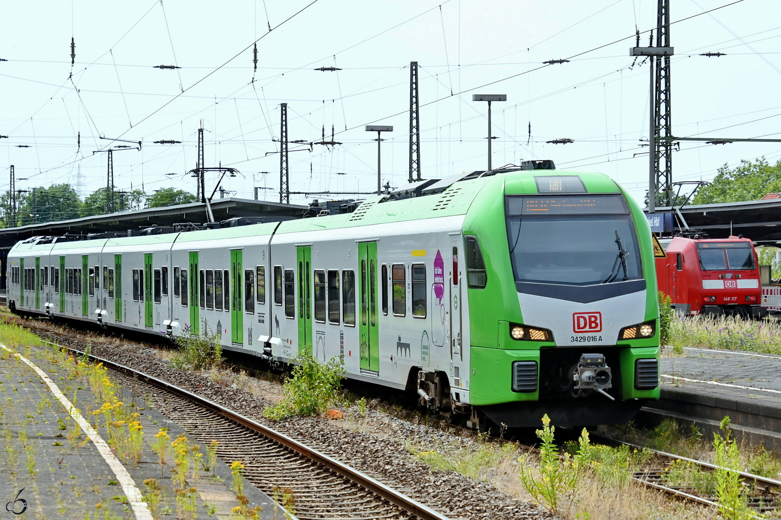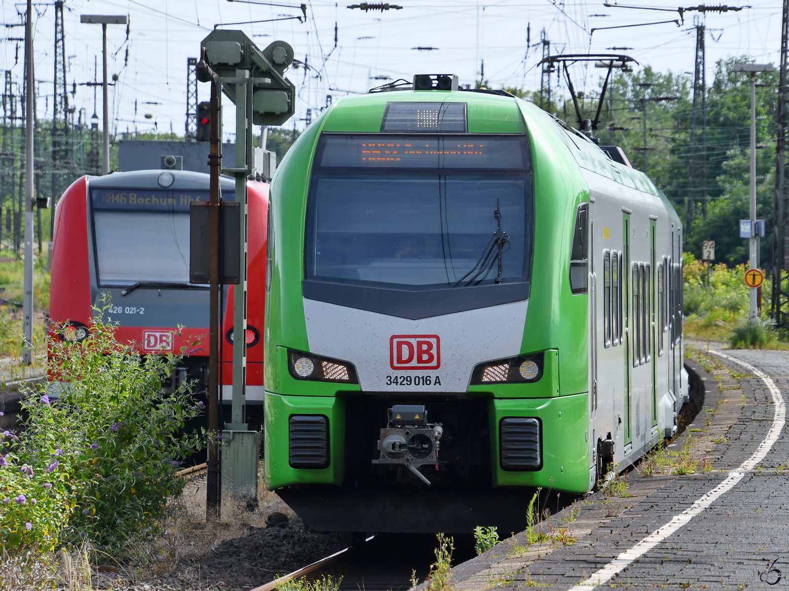 Der Elektrotriebzug 3429 007 B ist hier Anfang September 2024 bei der Ankunft am Hauptbahnhof Bochum zu sehen.