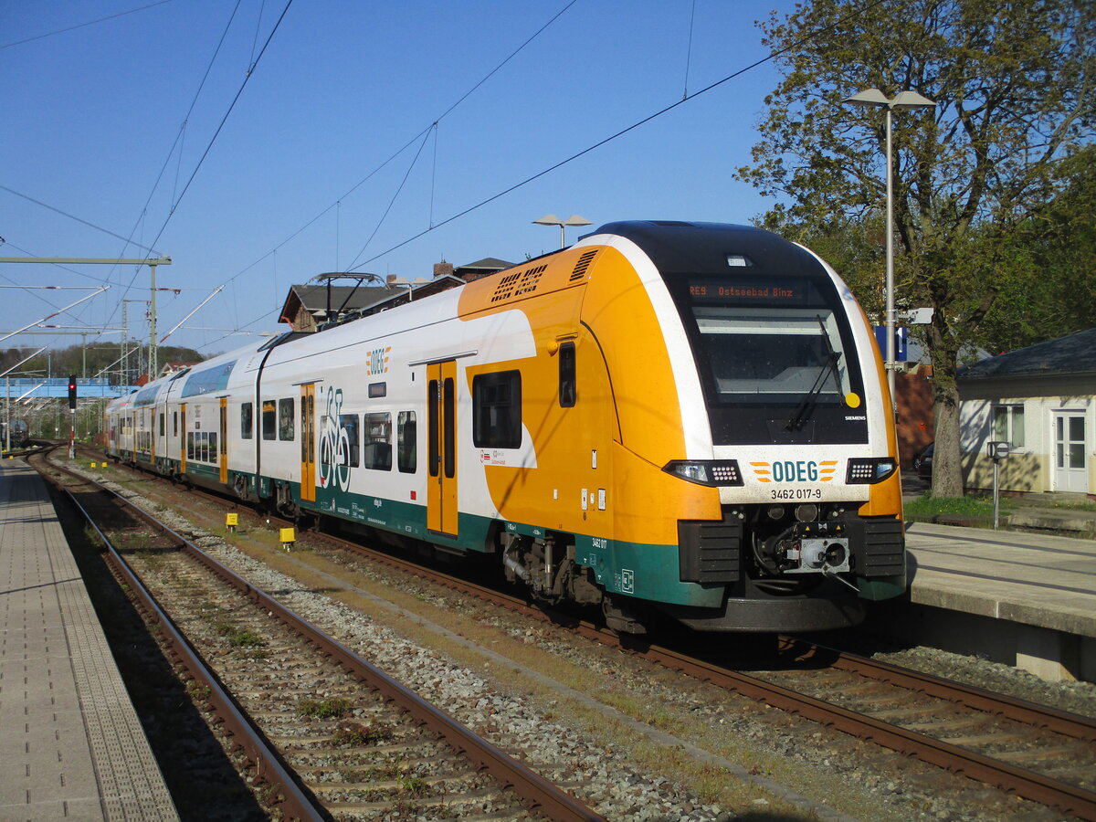 Mittlerweile keine Seltenheit mehr sind ODEG Desiro auf Rügen.Am 21.März 2025 war es der 462 124,der als RE Sassnitz-Rostock,in Bergen/Rügen hielt. Mirko Schmidt