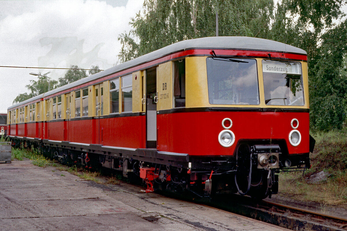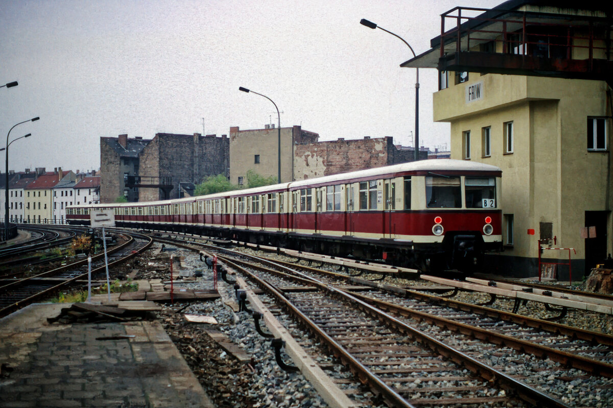 Der Berliner S-Bahn-Triebzugmit der DR-Nummer 277 333 am 14.11.1990 am Bf. Freidreichstraße. Nach dem Umzeichnungsplan erhielt das Tff. ab 01.10.1992 die DB-Nummer 477 151. Ernst Lauer