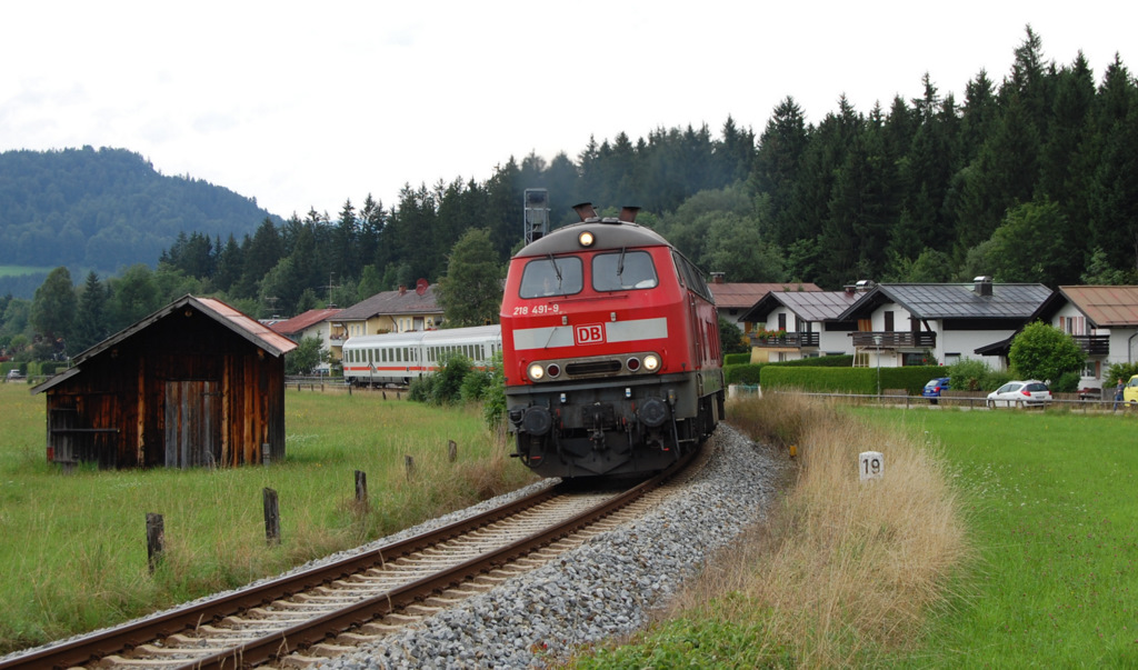 Während meines Allgäu-Aufenthalts war die Bewölkung und daraus resultierend das trübe Wetter mein ständiger Begleiter. Doch davon ließ ich mich nicht entmutigen sondern positionierte mich am 17. August 2010 am Einfahrsignal des Oberstdorfer Bahnhofes, um dort diese Aufnahme von 218 491-9 mitsamt ihrem IC 2085 anzufertigen. Pascal Ost