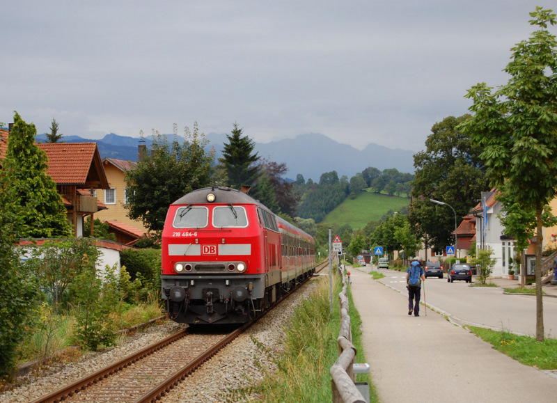 Zurück am "Oberstdorfer Bähnle" (II): Ebenfalls in Immenstadt entstand am 7.8.2011 dieses Foto der Kemptner 218 464-6, die gleich - leicht verspätet - am Ziel ihrer nur sieben Minuten dauernden Fahrt mit RE 57395 von Sonthofen nach Immenstadt angelangt ist. Pascal Ost