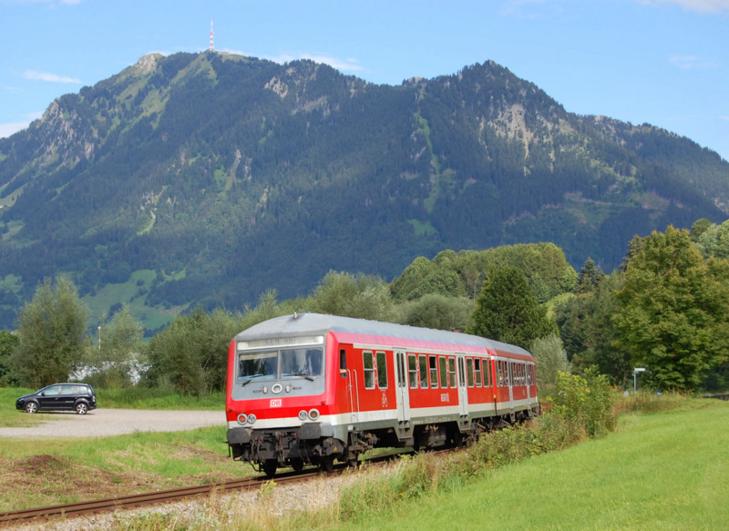 Zurück am "Oberstdorfer Bähnle" (V): RE 57396 (Immenstadt - Sonthofen) sollte eigentlich mit Lok Richtung Immenstadt verkehren, doch leider war die Garnitur gedreht, weswegen es anstatt einem Nachschuss auf die 218 nun einen solchen auf den Wittenberger Steuerwagen des Zuges zu sehen gibt. Der Aufnahmeort befindet sich zwischen Immenstadt und Blaichach und die Aufnahme entstammt dem 13.8.2011. Pascal Ost