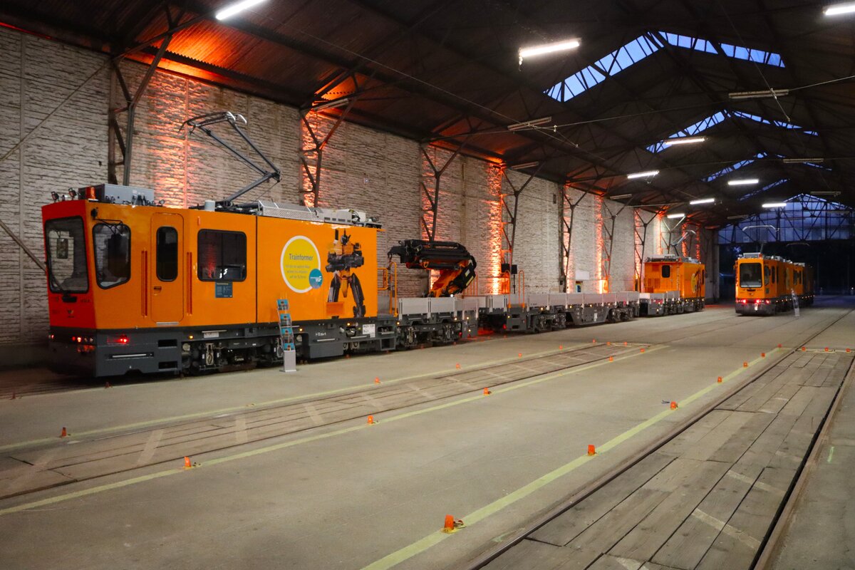 Neuer VGF Windhoff SF50 (Präzises Schienenschleiffahrzeug für den Nahverkehr) auch Schleifzug genanntam 21.09.25 beim Tag der Schiene im Betriebshof Eckenheim am Abend. Hier handelt es sich um die VGF Wagen 2005 Daniel Oster
